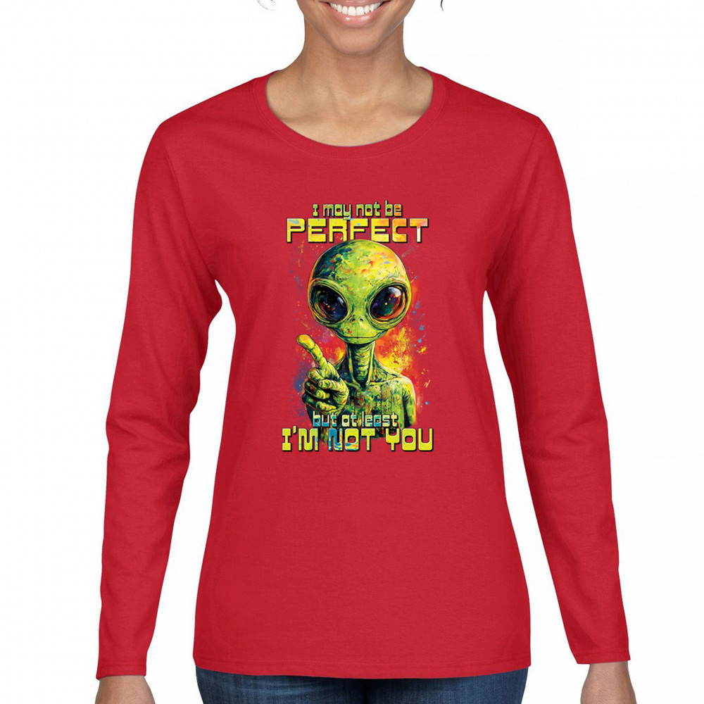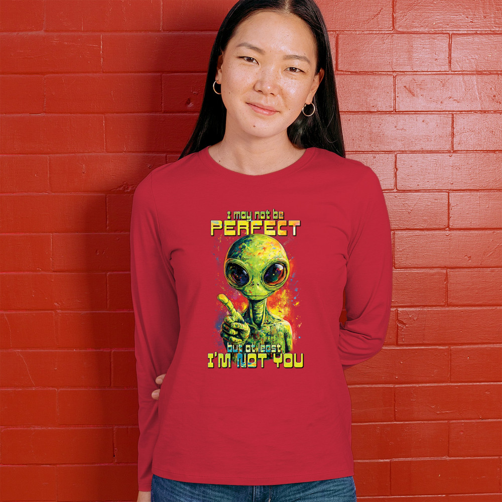 This smug alien design delivers sharp sarcastic humor with vibrant cosmic flair. Featuring a big-eyed extraterrestrial and the quote “I may not be perfect, but at least I’m not you,†it’s perfect for sci-fi fans, alien lovers, jokesters, and oddballs alike. A bold, funny statement for parties, UFO events, and festivals.