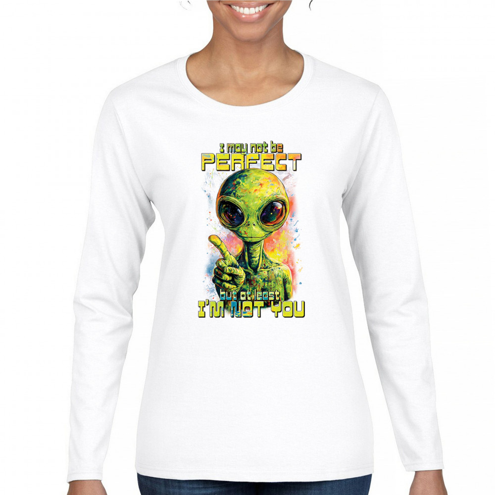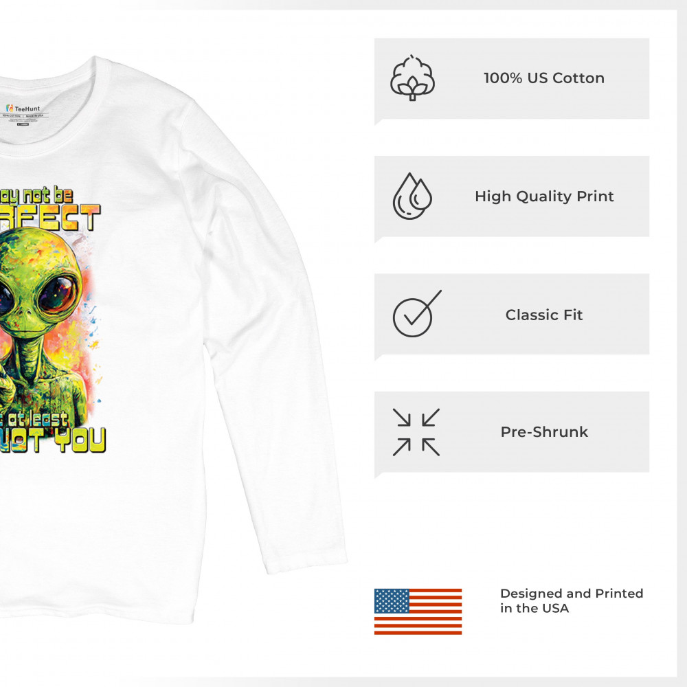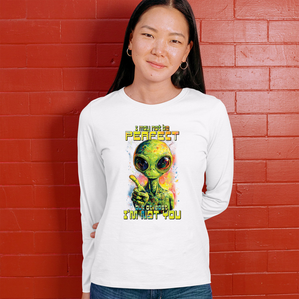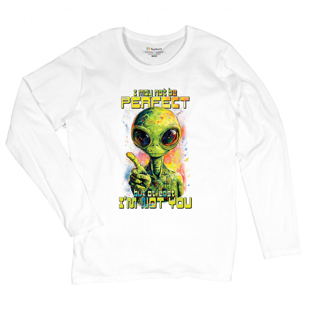 This smug alien design delivers sharp sarcastic humor with vibrant cosmic flair. Featuring a big-eyed extraterrestrial and the quote “I may not be perfect, but at least I’m not you,†it’s perfect for sci-fi fans, alien lovers, jokesters, and oddballs alike. A bold, funny statement for parties, UFO events, and festivals.
