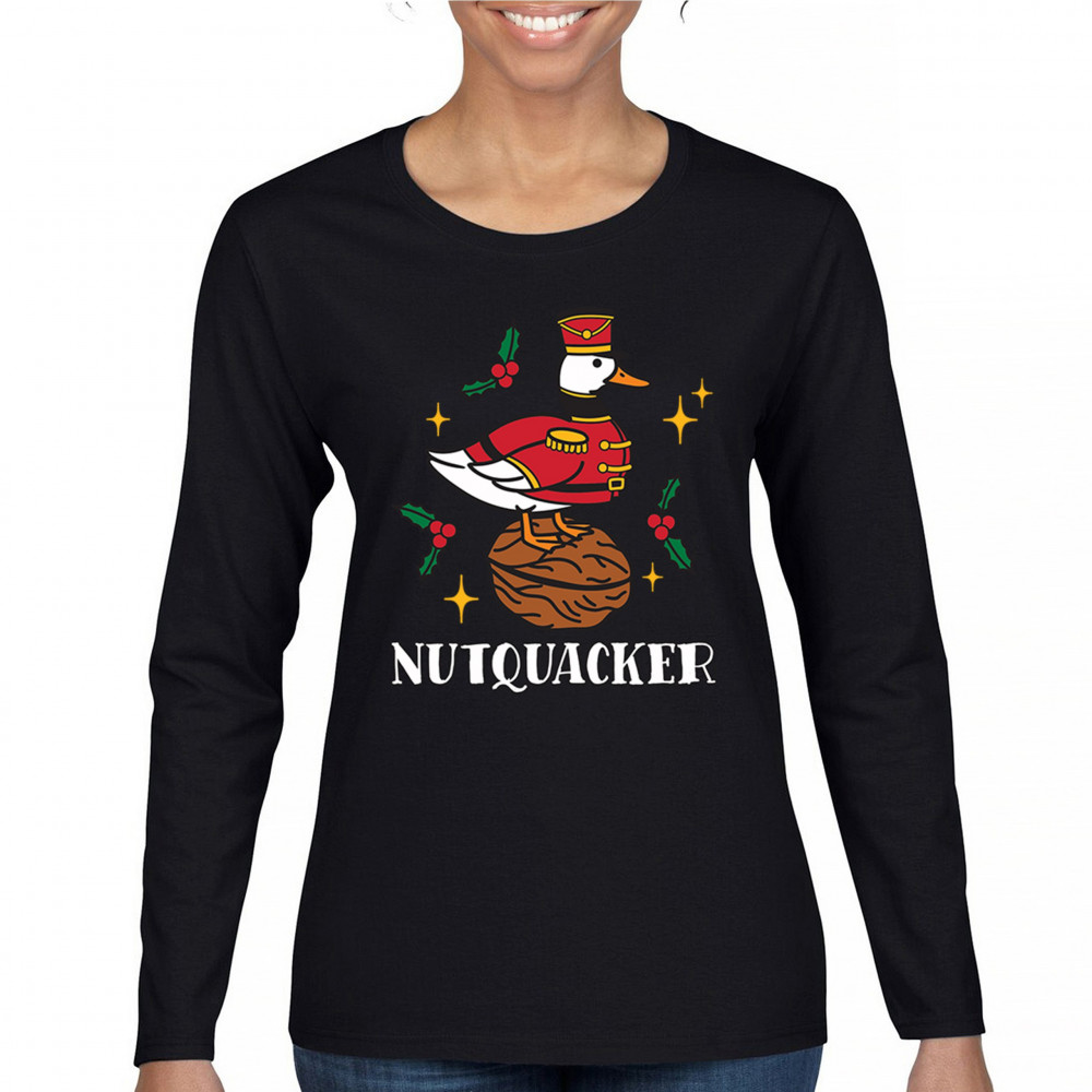 NUTQUACKER women's long sleeve t-shirt nutcracker ugly sweater christmas goose black