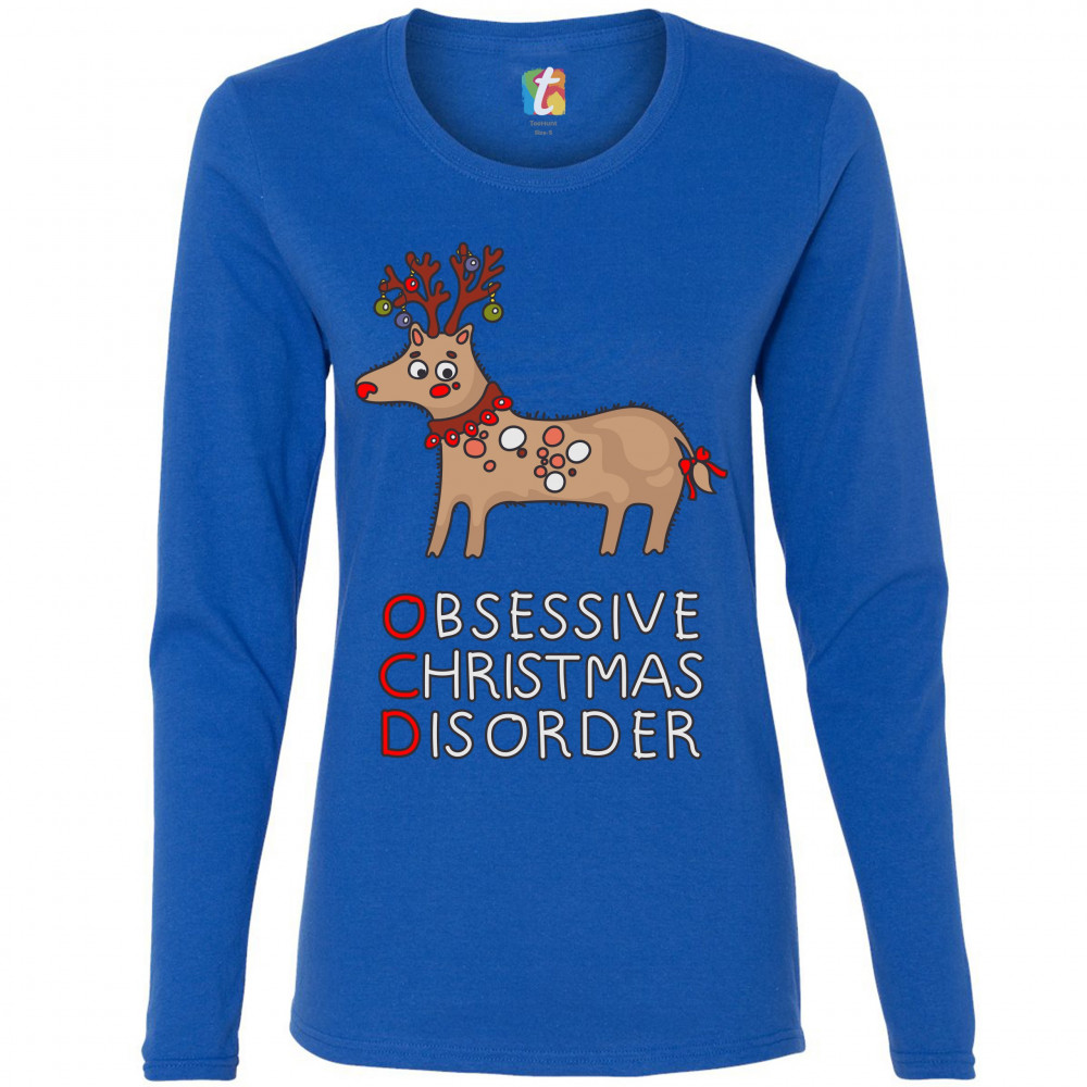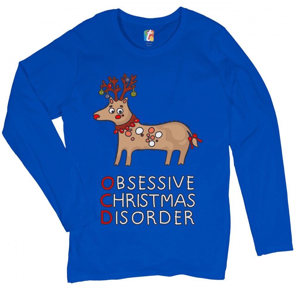 OCD OBSESSIVE CHRISTMAS DISORDER women's long sleeve t-shirt reindeer rudolph royal blue