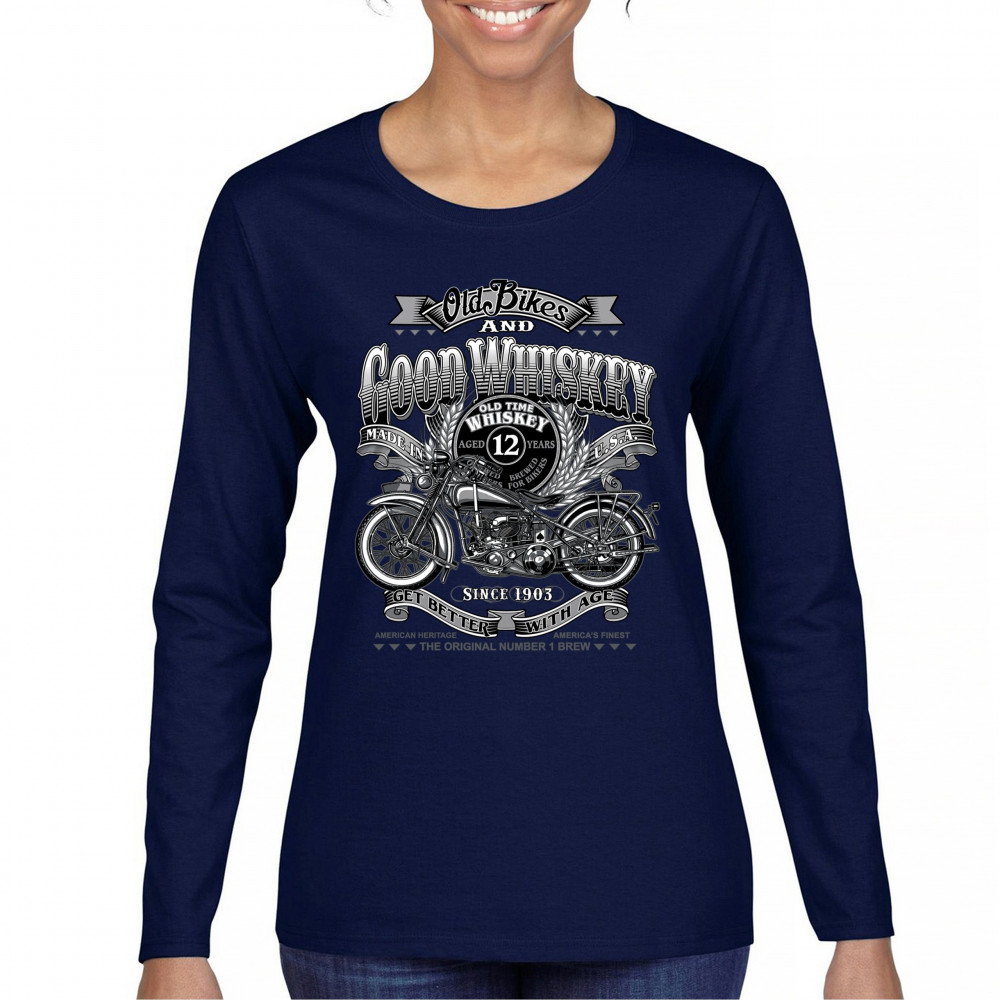 Vintage design with old bike, 12-year whiskey label, and 1903 tribute—perfect for bikers who ride hard and sip slow.