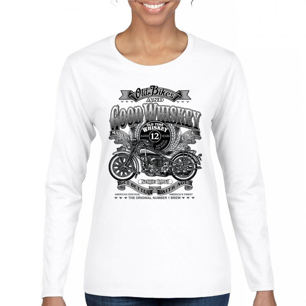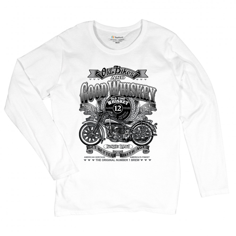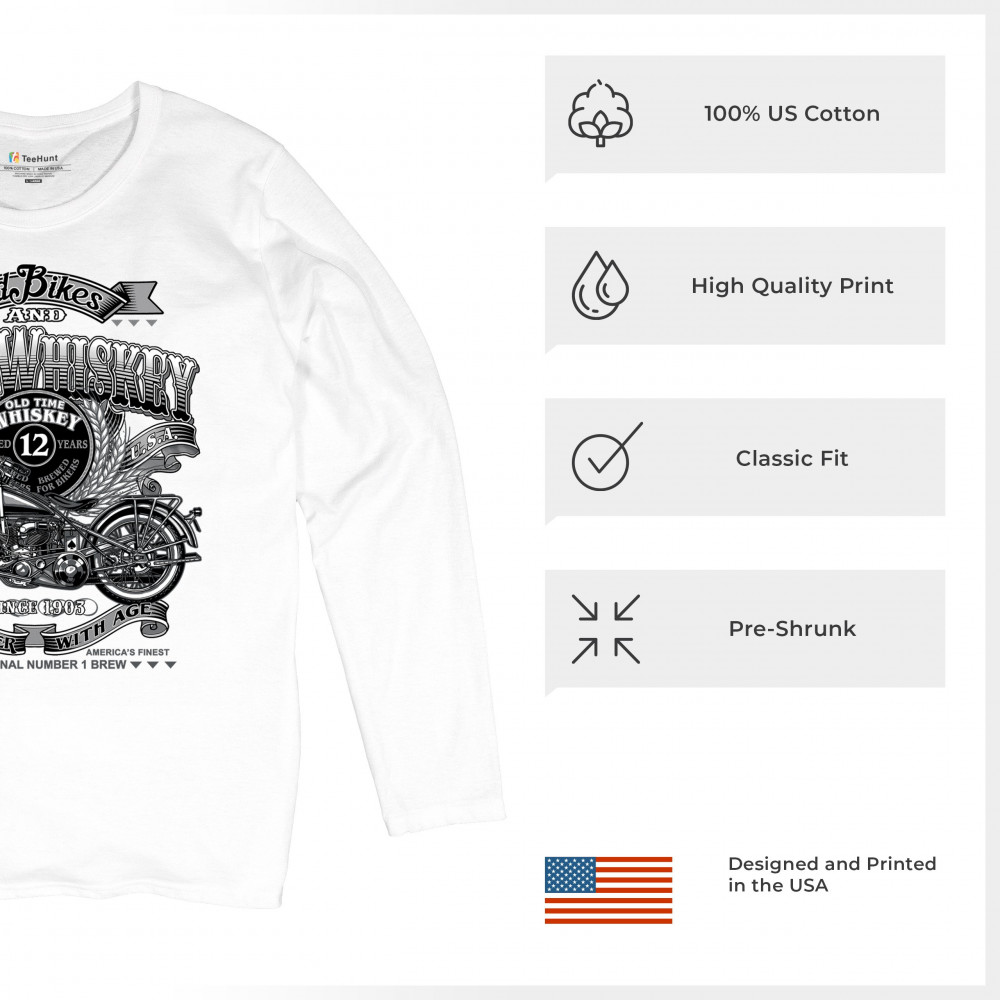Vintage design with old bike, 12-year whiskey label, and 1903 tribute—perfect for bikers who ride hard and sip slow.