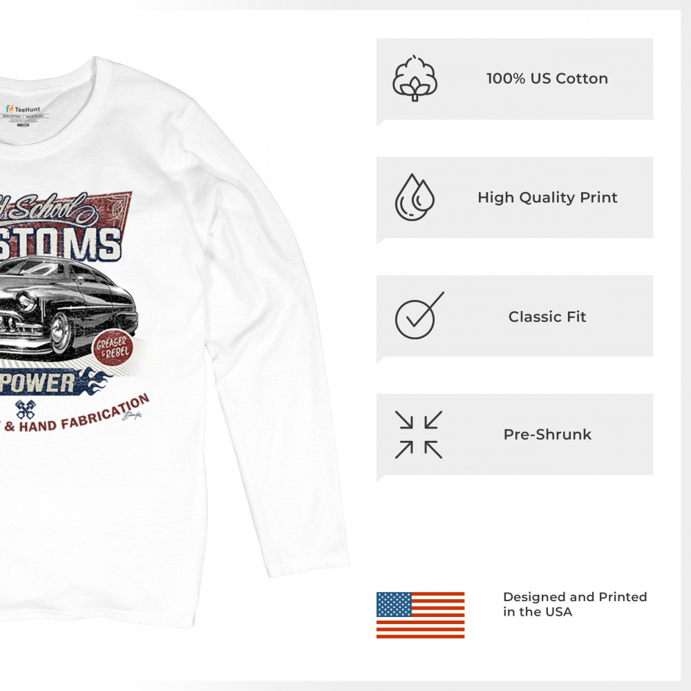 Step into the world of classic automotive culture with our "Old School Customs" t-shirt. Featuring a bold V8 power design, this shirt highlights the art of custom paint and hand fabrication. It's perfect for car enthusiasts, greasers, and rebels who appreciate the unique style of vintage rides. Made from high-quality materials, this tee offers comfort and durability, making it a great choice for car shows or casual outings. Show your love for old-school cars and stand out with this stylish and nostalgic piece. Add a touch of vintage charm to your wardrobe today.