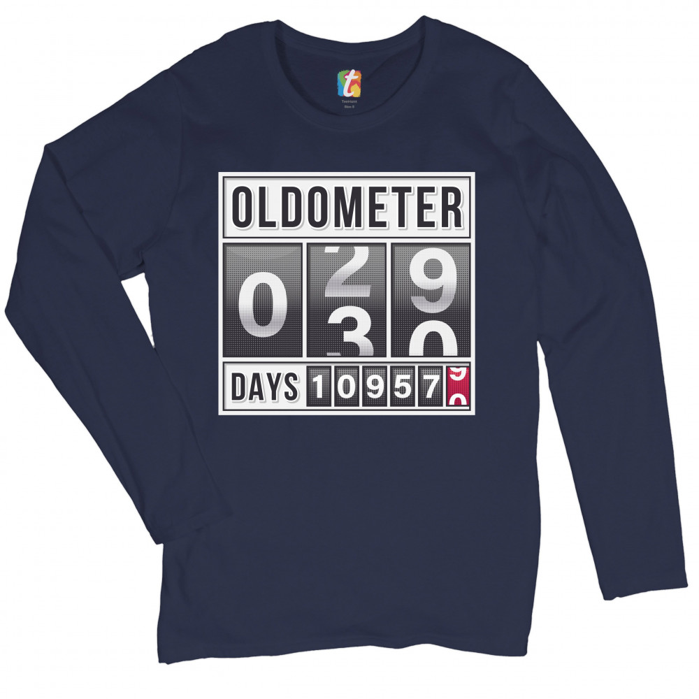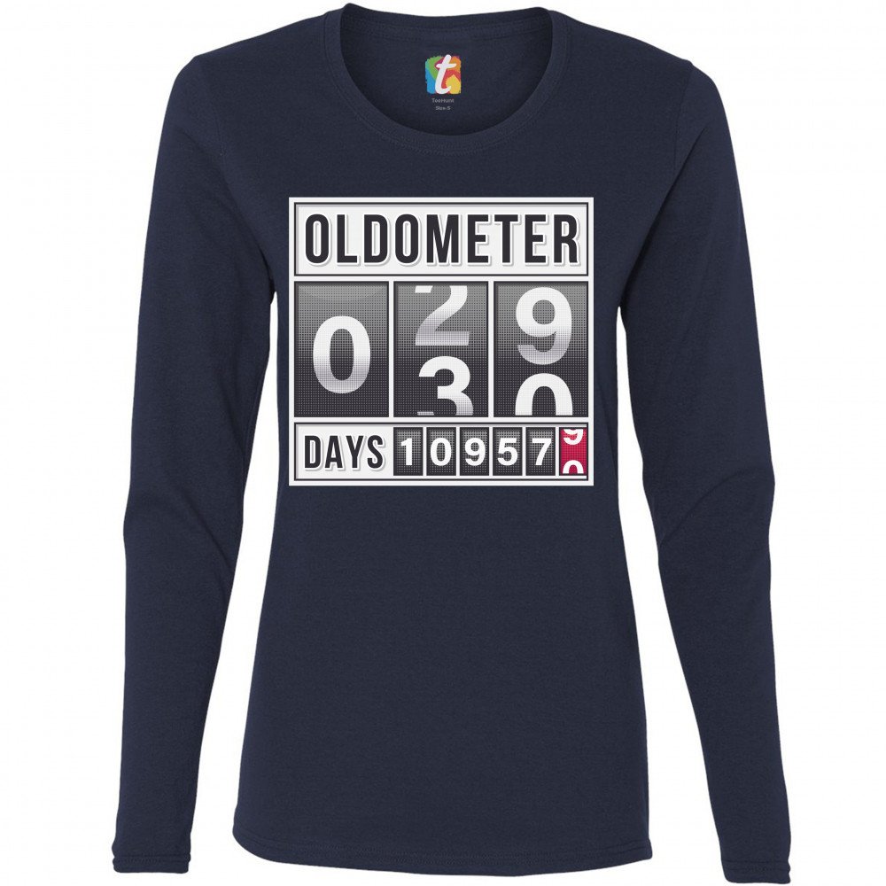 OLDOMETER 29-30 women's long sleeve t-shirt funny odometer anniversary birthday navy blue