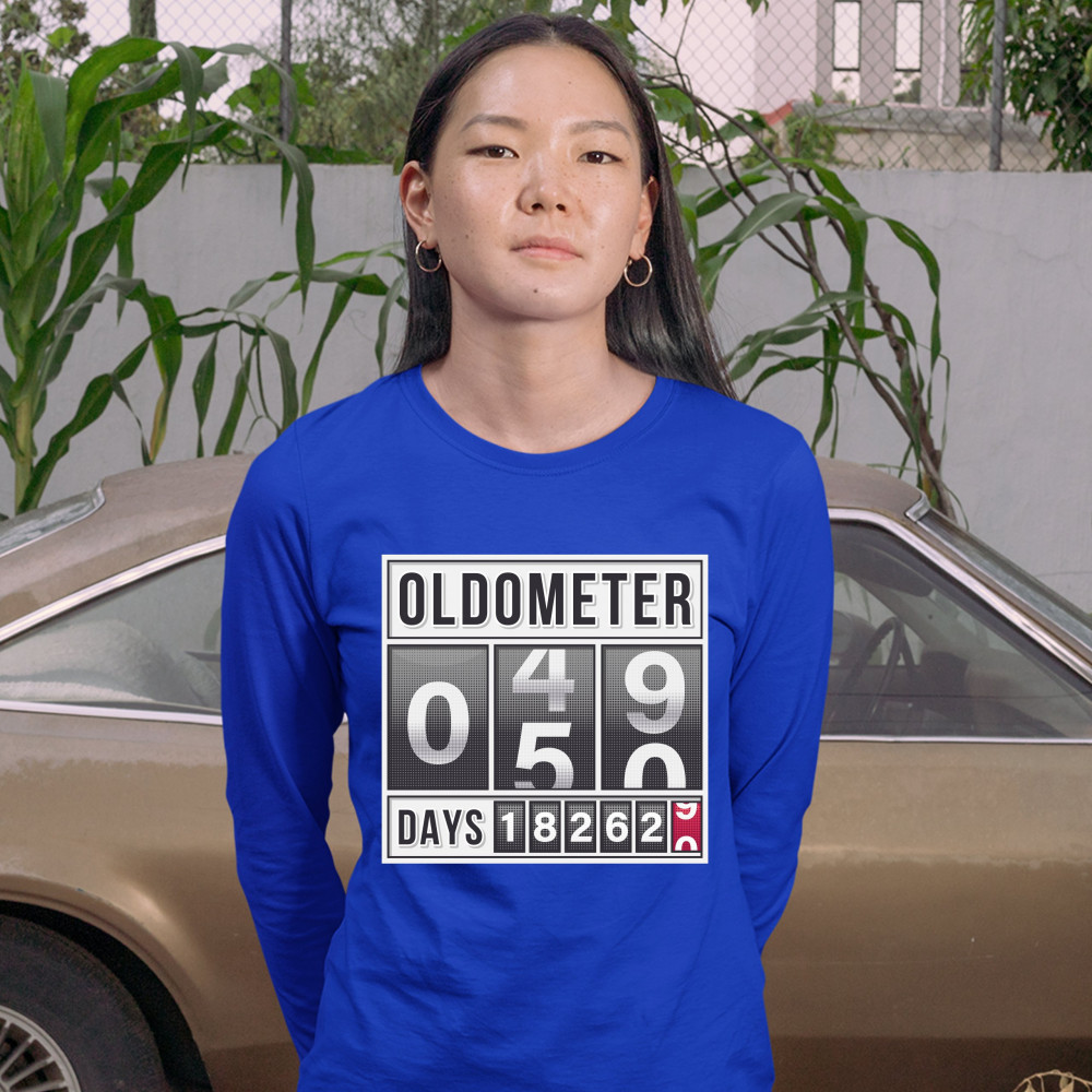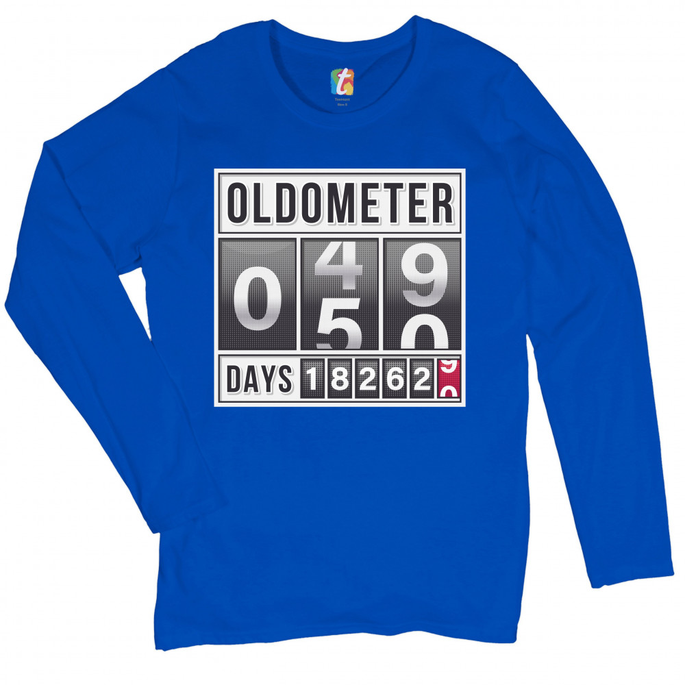 OLDOMETER 49-50 women's long sleeve t-shirt 50th anniversary 50 af odometer royal blue