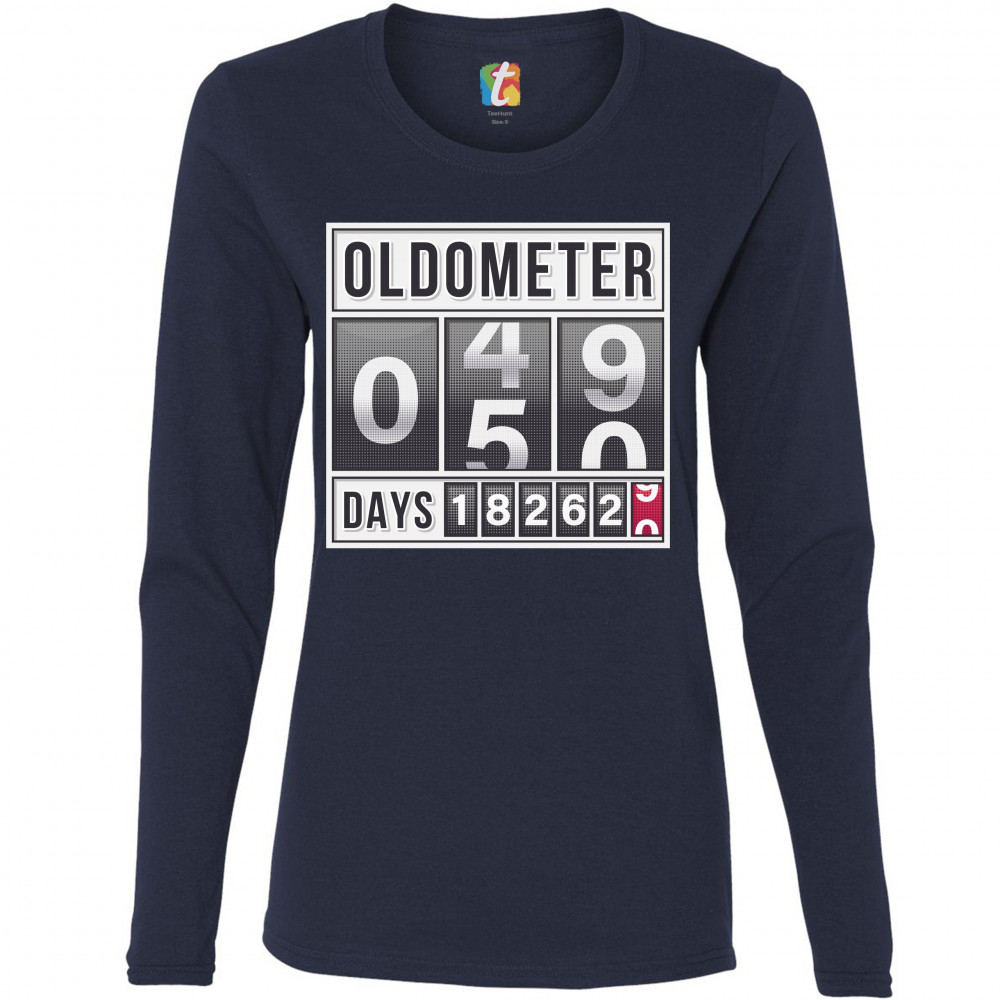 OLDOMETER 49-50 women's long sleeve t-shirt 50th anniversary 50 af odometer navy blue