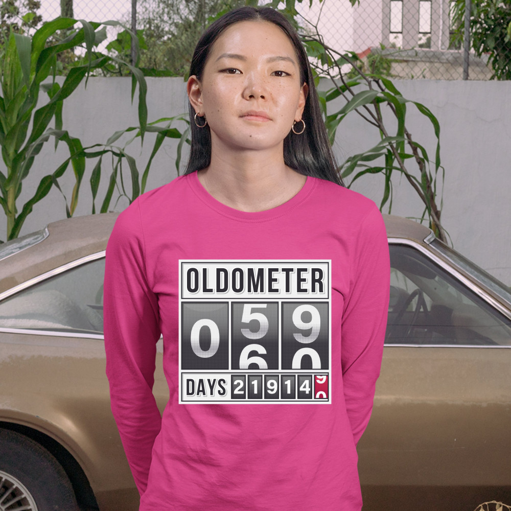 OLDOMETER 59-60 women's long sleeve t-shirt old lives matter funny odometer pink