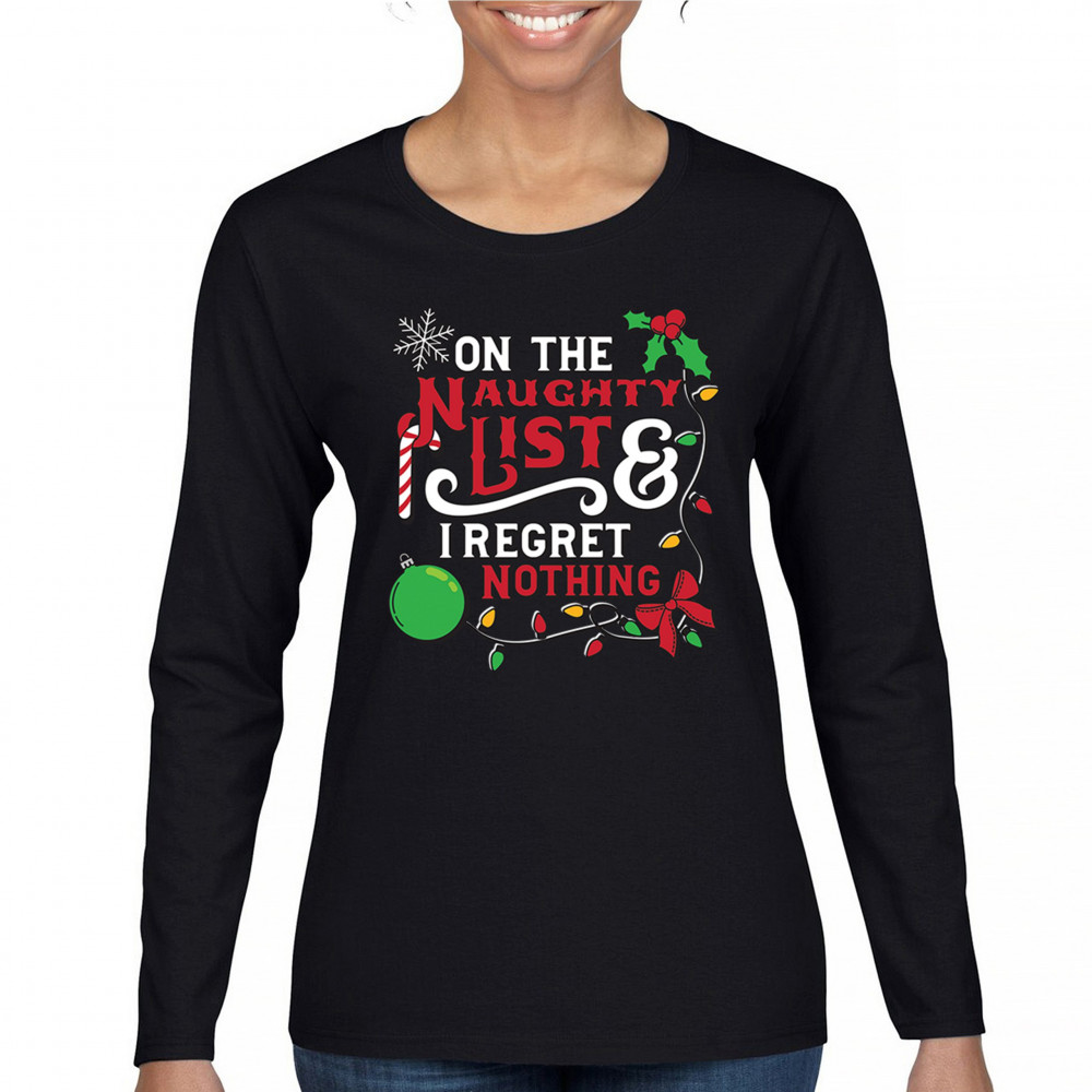 ON THE NAUGHTY LIST AND I REGRET NOTHING women's long sleeve t-shirt christmas black