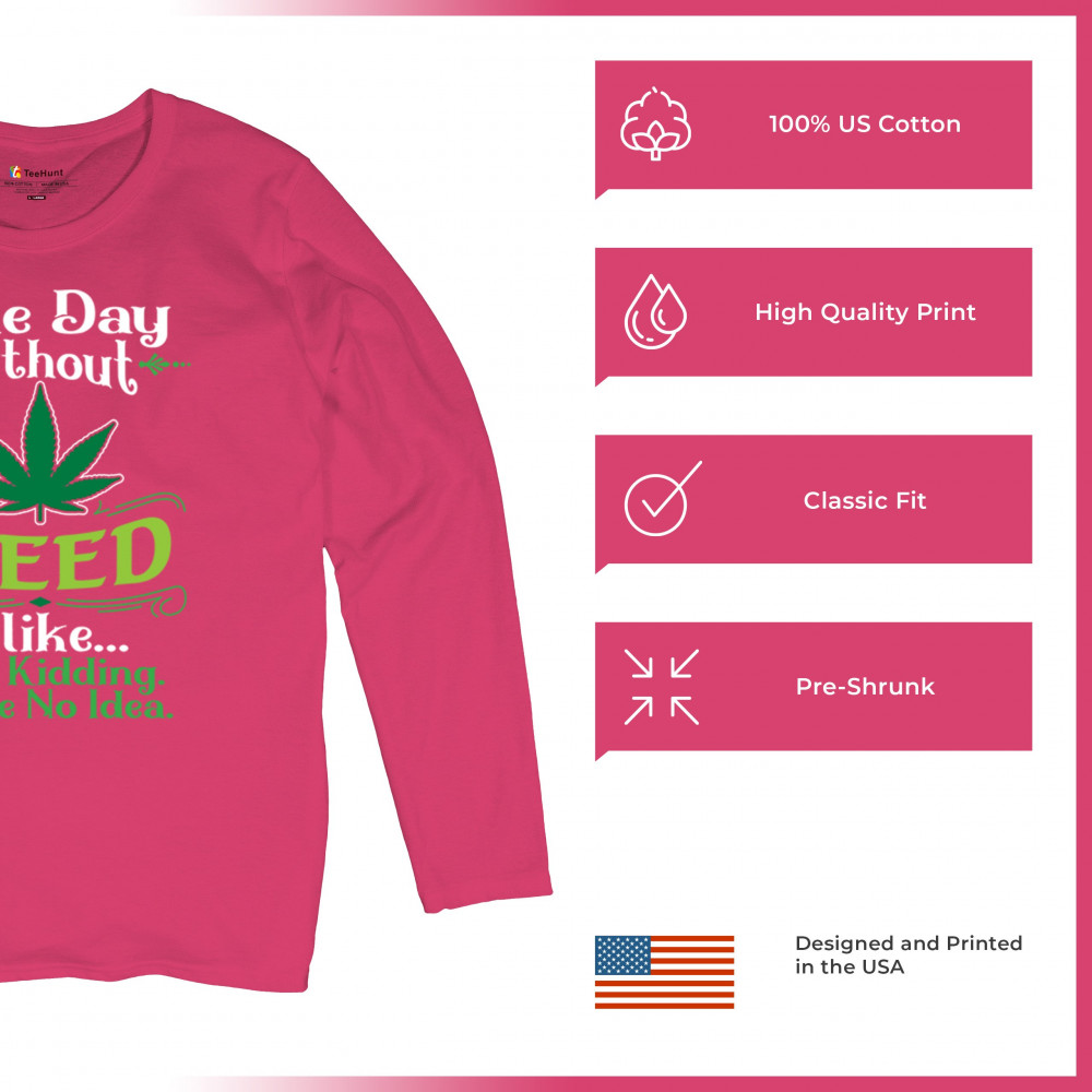 Express your love for Mary Jane and your sense of humor with our "One Day Without Weed" design. Featuring a bold cannabis leaf and a playful, witty message, this design is perfect for those who enjoy the chill vibes of cannabis culture. Ideal for relaxing with your best buds, making a statement about legalization, or simply adding some fun to your wardrobe. Embrace the stoned humor and show off your relaxed, trippy style with this unique design.