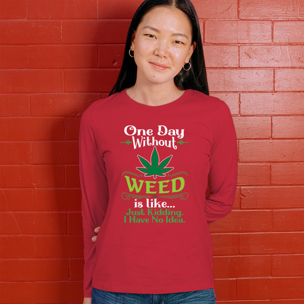 Express your love for Mary Jane and your sense of humor with our "One Day Without Weed" design. Featuring a bold cannabis leaf and a playful, witty message, this design is perfect for those who enjoy the chill vibes of cannabis culture. Ideal for relaxing with your best buds, making a statement about legalization, or simply adding some fun to your wardrobe. Embrace the stoned humor and show off your relaxed, trippy style with this unique design.