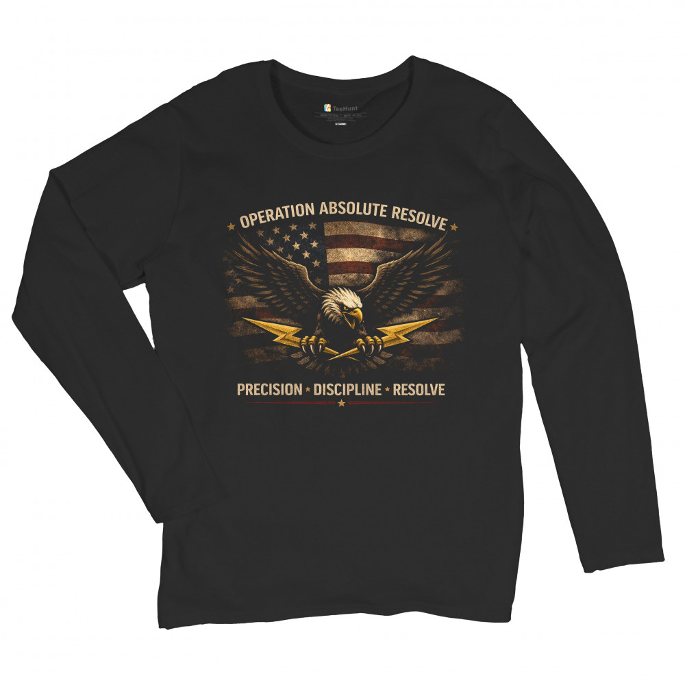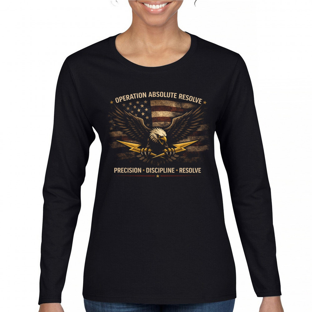 Patriotic bald eagle design symbolizing American precision, discipline, and resolve with a timeless vintage flag style.