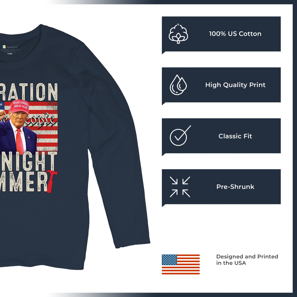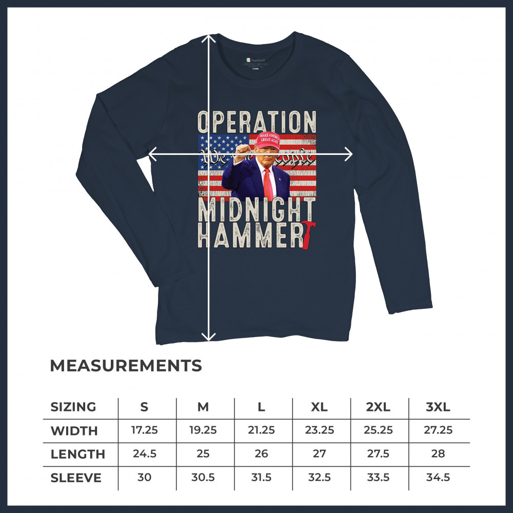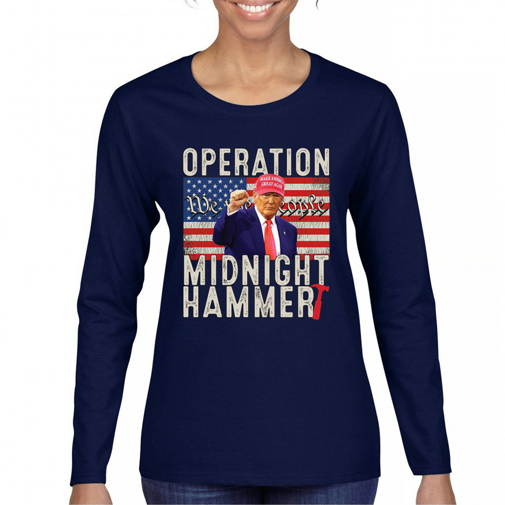 Operation Midnight Hammer is a bold, pro-America design featuring a presidential figure, hammer symbolism, and USA flag. For those who believe in America First, military strength, and Republican values. Worn by patriots who stand for freedom, leadership, and unwavering national pride.