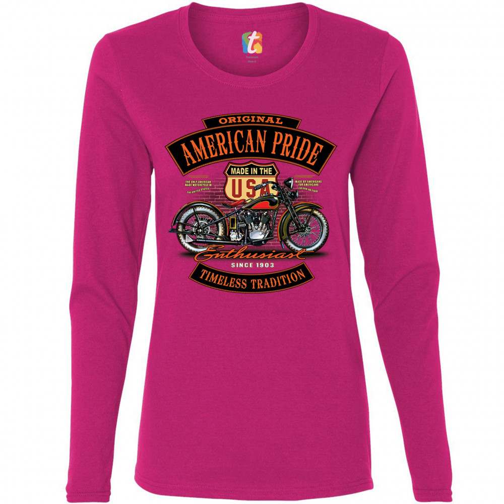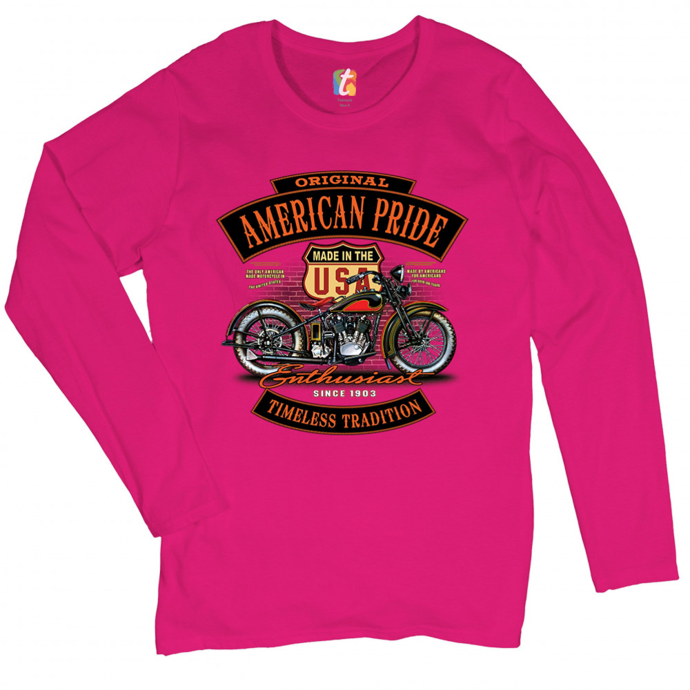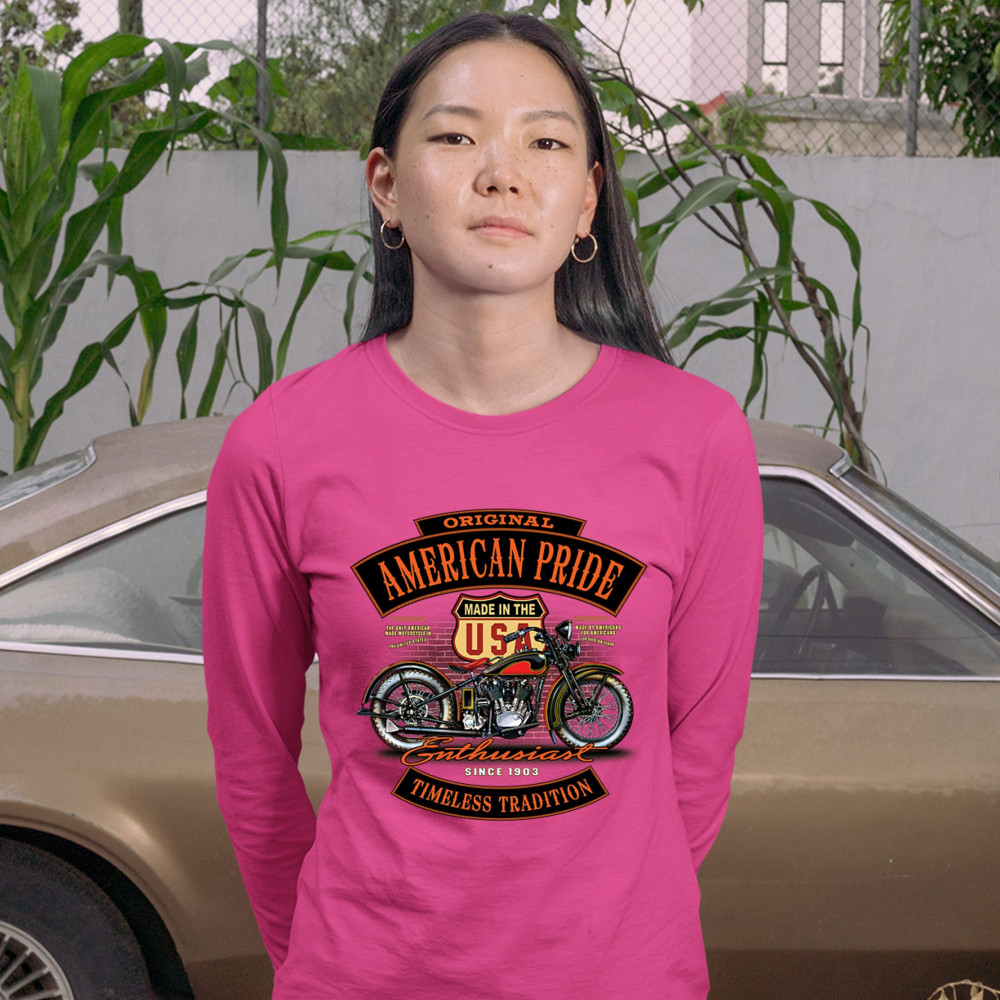 ORIGINAL AMERICAN PRIDE women's long sleeve t-shirt biker motorcycle enthusiast pink