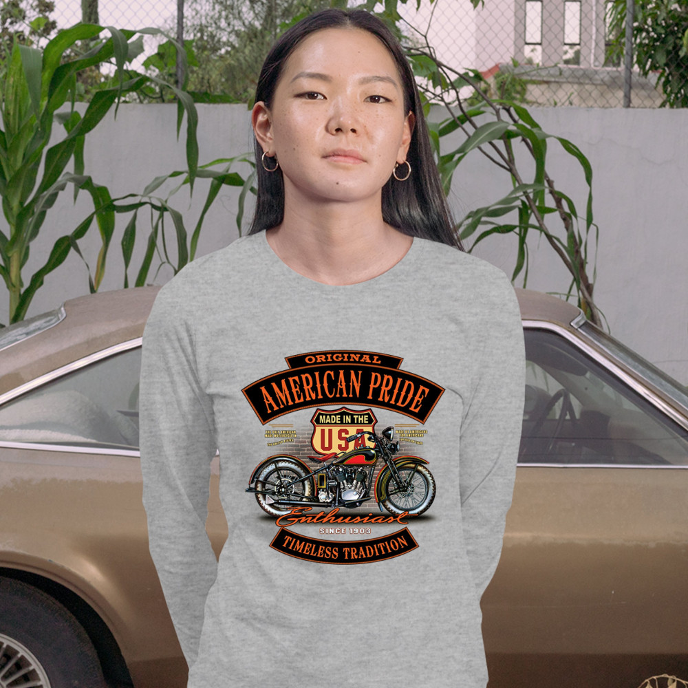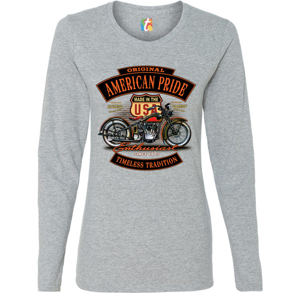 ORIGINAL AMERICAN PRIDE women's long sleeve t-shirt biker motorcycle enthusiast gray