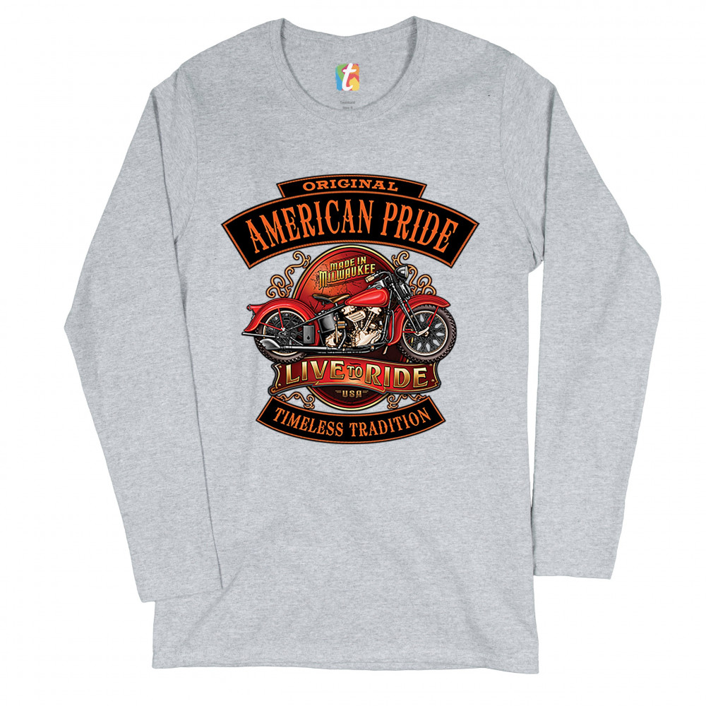 ORIGINAL AMERICAN PRIDE women's long sleeve t-shirt live to ride motorcycle gray