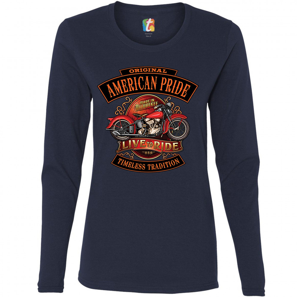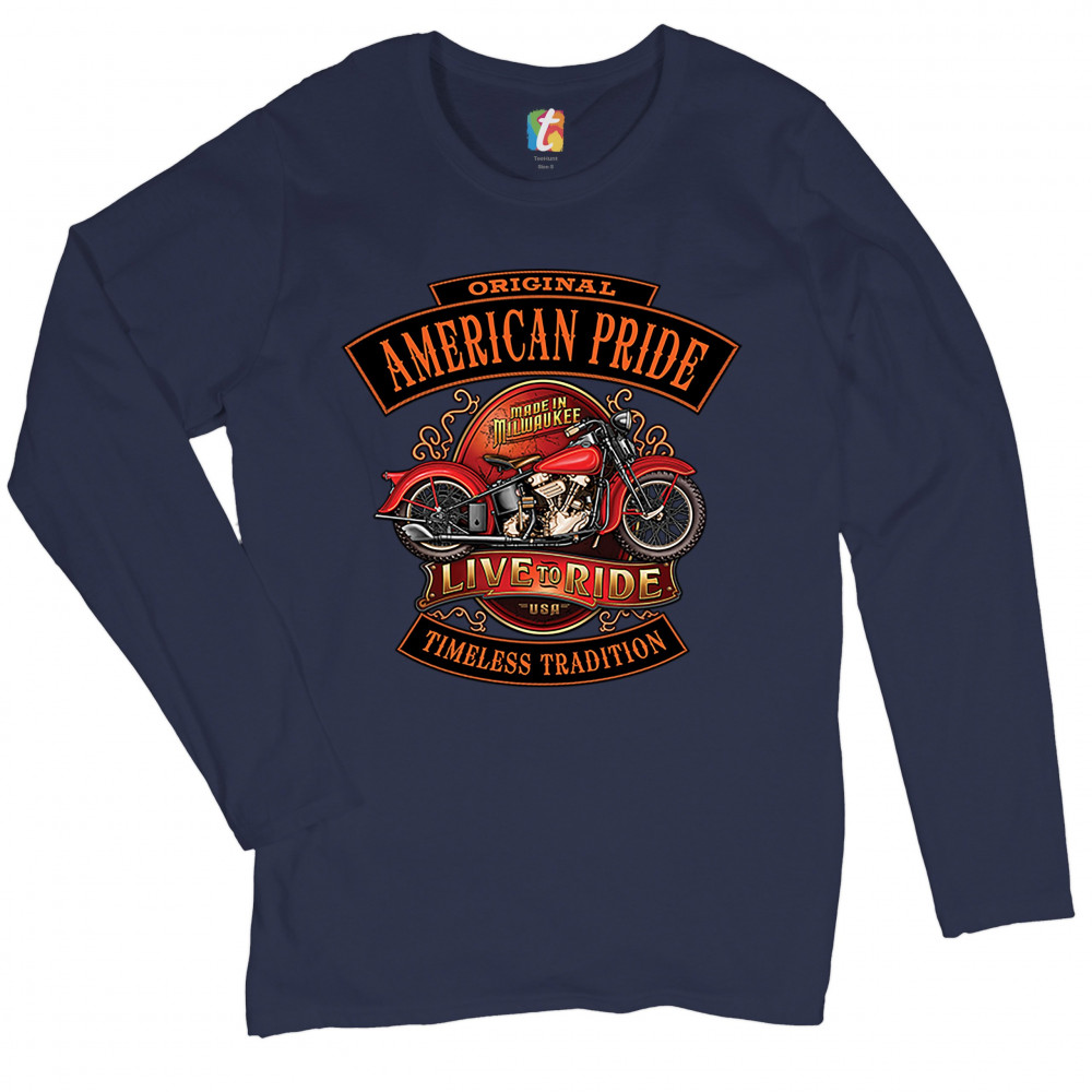 ORIGINAL AMERICAN PRIDE women's long sleeve t-shirt live to ride motorcycle navy blue