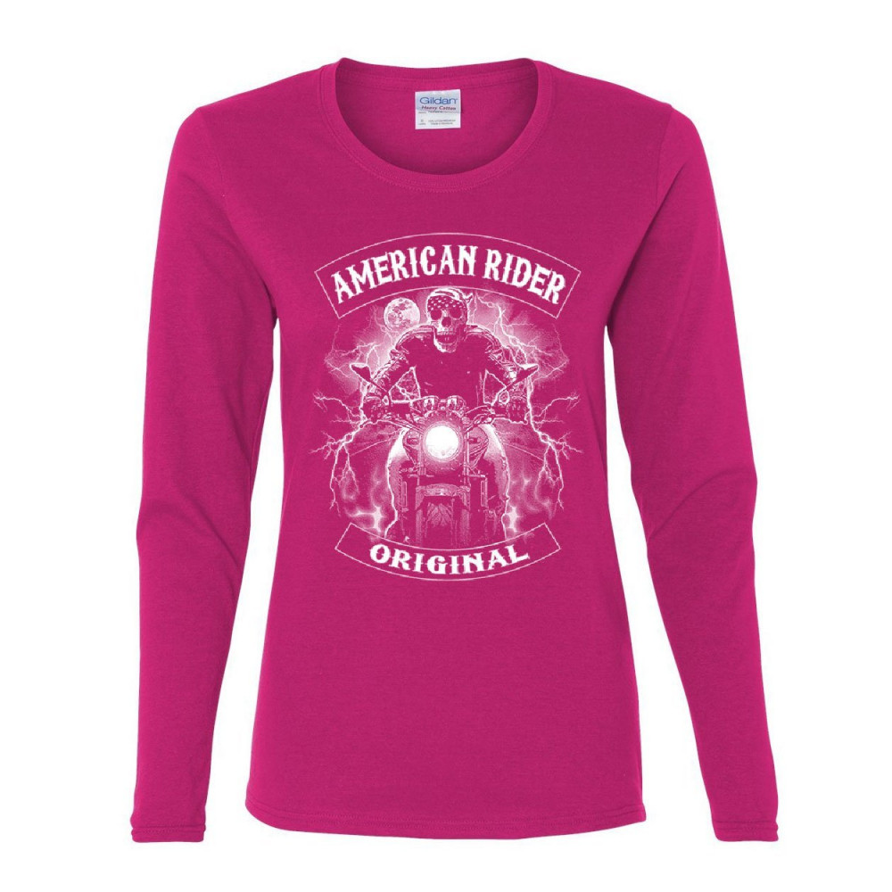 ORIGINAL AMERICAN RIDER women's long sleeve tee skull face route 66 biker mc hot pink
