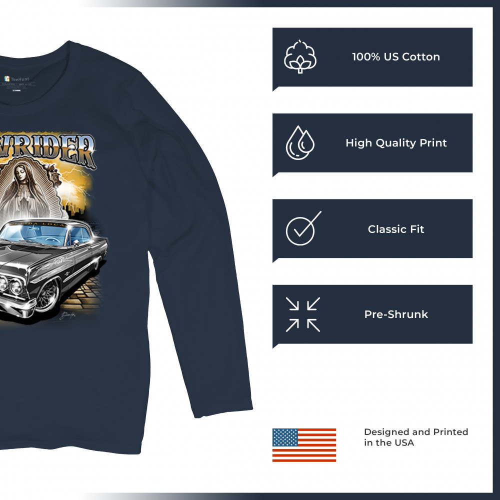 Unleash your love for custom cars with our "Original Lowrider" t-shirt. Showcasing a meticulously detailed 1964 lowrider, this shirt is a must-have for anyone passionate about car culture and street art. Whether you're attending a car show, hitting the streets, or just hanging out, this tee combines style and comfort. Made from premium materials, it ensures lasting quality and a great fit. Make your wardrobe stand out with this iconic lowrider design.