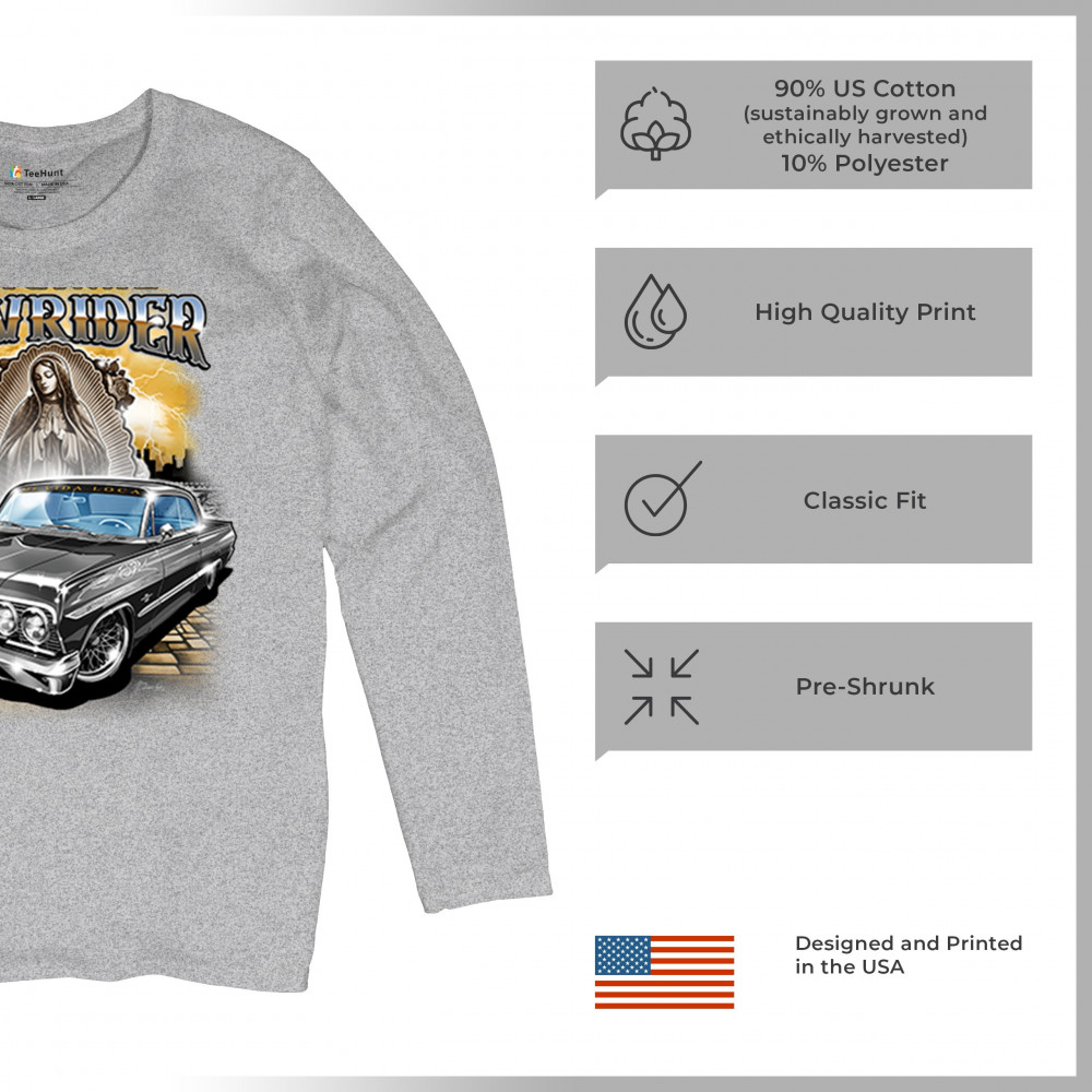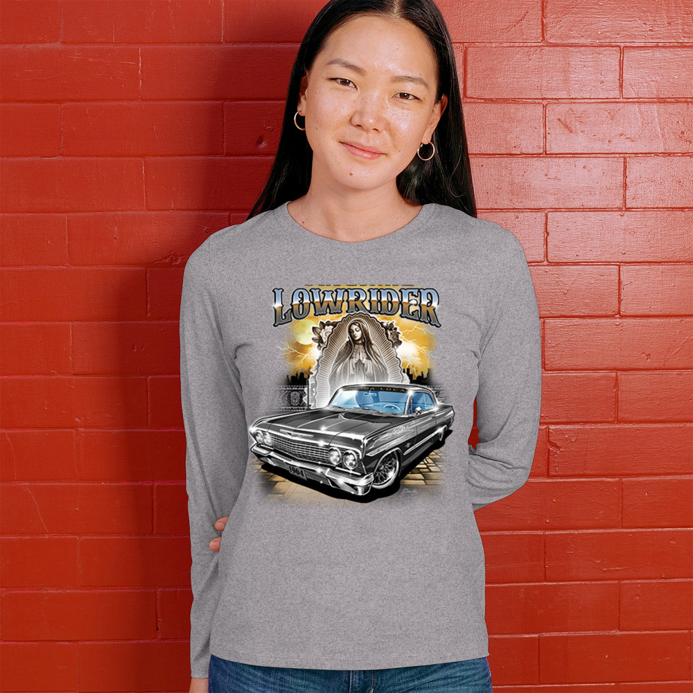 Unleash your love for custom cars with our "Original Lowrider" t-shirt. Showcasing a meticulously detailed 1964 lowrider, this shirt is a must-have for anyone passionate about car culture and street art. Whether you're attending a car show, hitting the streets, or just hanging out, this tee combines style and comfort. Made from premium materials, it ensures lasting quality and a great fit. Make your wardrobe stand out with this iconic lowrider design.