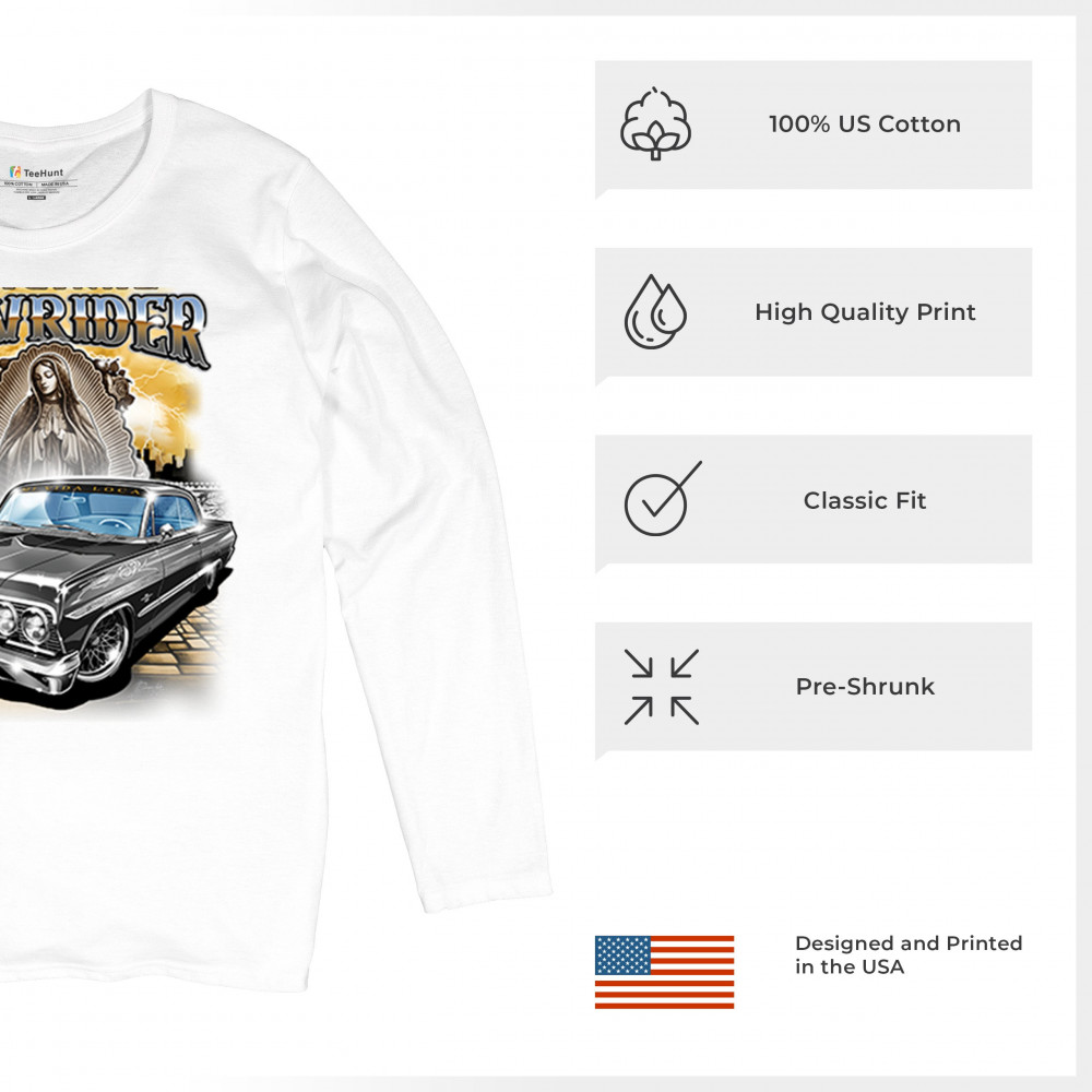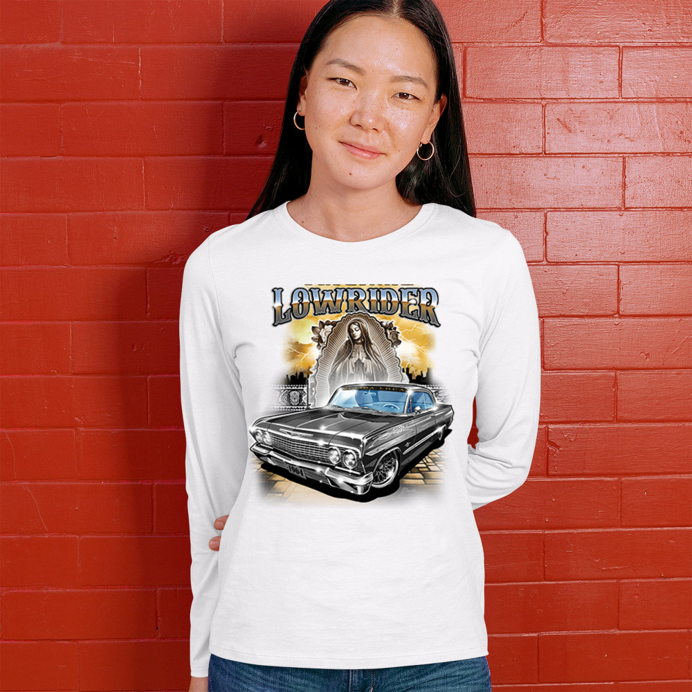 Unleash your love for custom cars with our "Original Lowrider" t-shirt. Showcasing a meticulously detailed 1964 lowrider, this shirt is a must-have for anyone passionate about car culture and street art. Whether you're attending a car show, hitting the streets, or just hanging out, this tee combines style and comfort. Made from premium materials, it ensures lasting quality and a great fit. Make your wardrobe stand out with this iconic lowrider design.