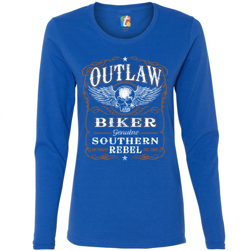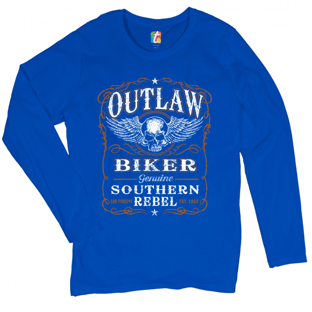 OUTLAW BIKER women's long sleeve t-shirt genuine southern rebel winged skull royal blue