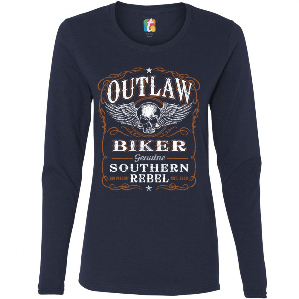 OUTLAW BIKER women's long sleeve t-shirt genuine southern rebel winged skull navy blue