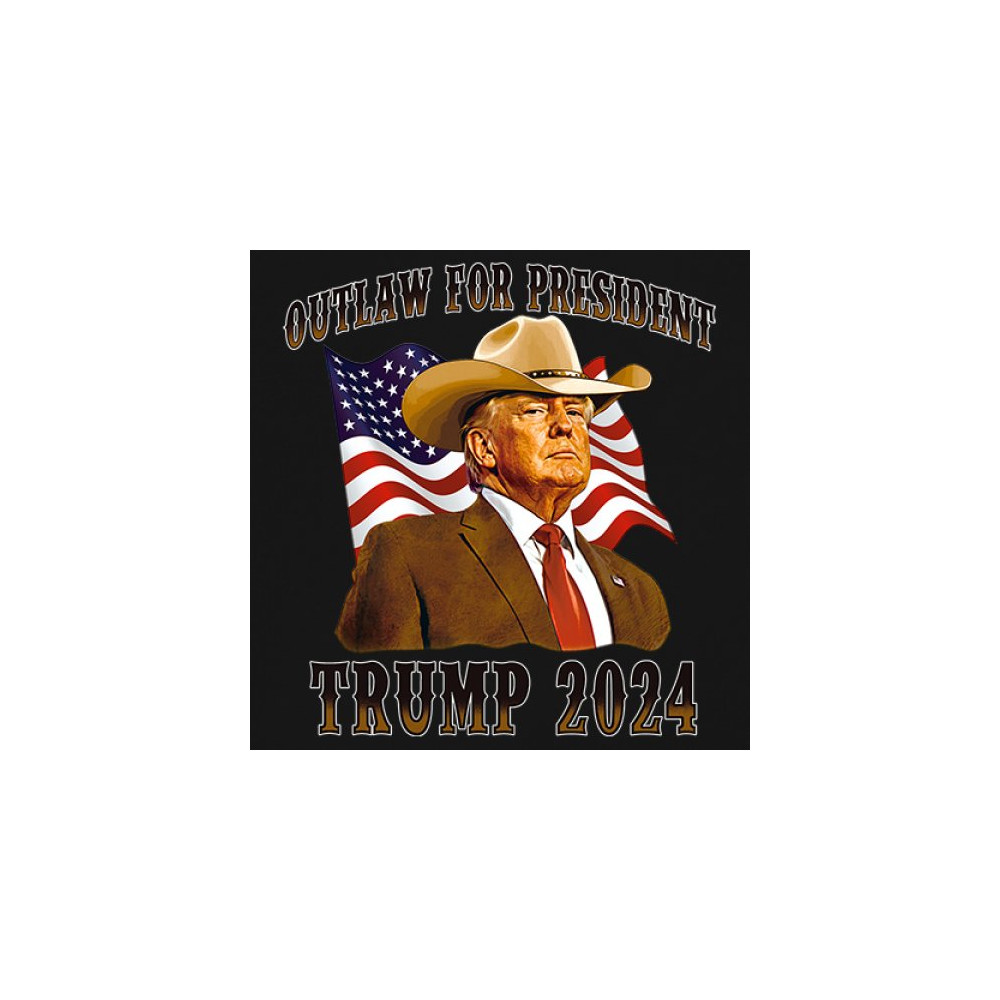 The "Outlaw for President" Trump 2024 design is a powerful symbol of American resilience and conservative pride. Featuring Donald J. Trump in a cowboy hat with the American flag waving behind, this design speaks to supporters who believe in the America First movement, conservative values, and a rebel spirit. Ideal for rallies, patriotic events, and anyone looking to make a bold statement for the 47th President of the United States.