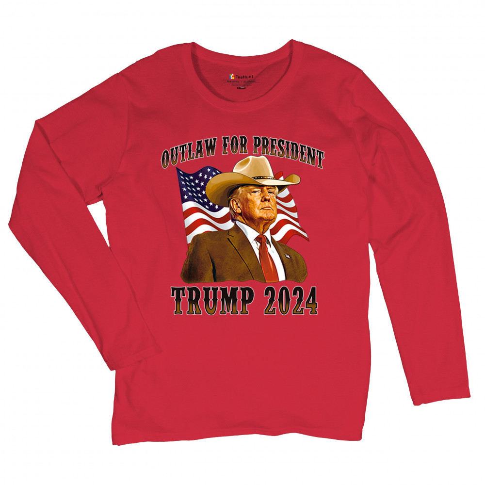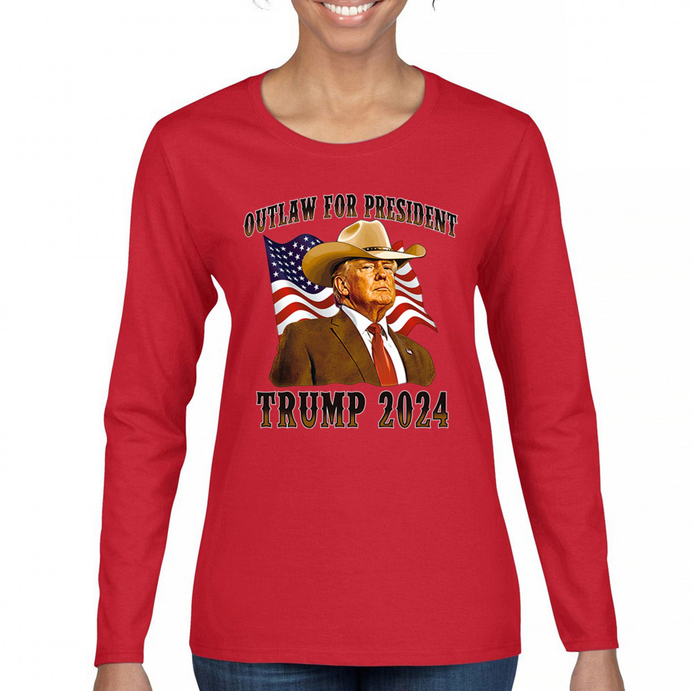 Bold "Outlaw for President" Trump 2024 design for conservative supporters, featuring Donald J. Trump and the American flag. Show your patriotism.