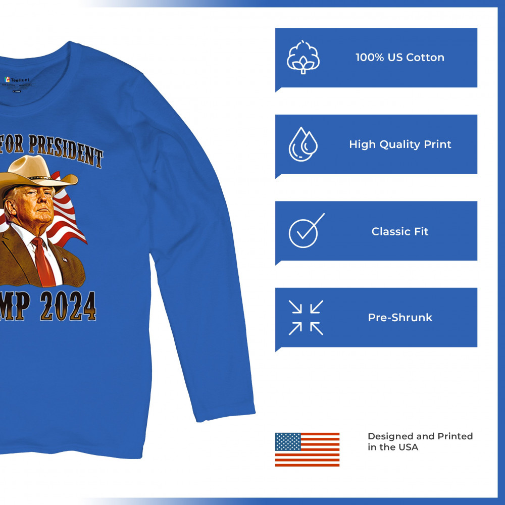 The "Outlaw for President" Trump 2024 design is a powerful symbol of American resilience and conservative pride. Featuring Donald J. Trump in a cowboy hat with the American flag waving behind, this design speaks to supporters who believe in the America First movement, conservative values, and a rebel spirit. Ideal for rallies, patriotic events, and anyone looking to make a bold statement for the 47th President of the United States.
