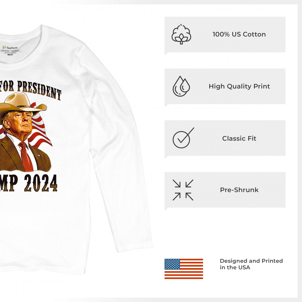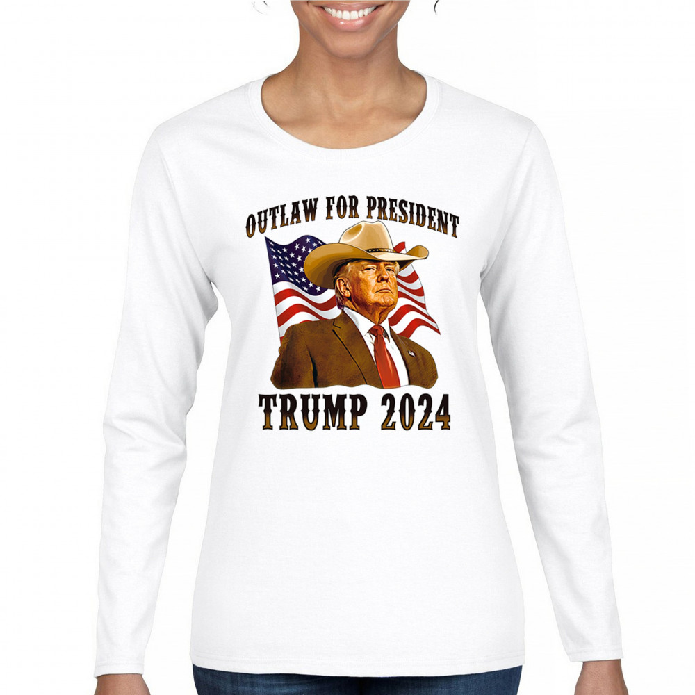 The "Outlaw for President" Trump 2024 design is a powerful symbol of American resilience and conservative pride. Featuring Donald J. Trump in a cowboy hat with the American flag waving behind, this design speaks to supporters who believe in the America First movement, conservative values, and a rebel spirit. Ideal for rallies, patriotic events, and anyone looking to make a bold statement for the 47th President of the United States.