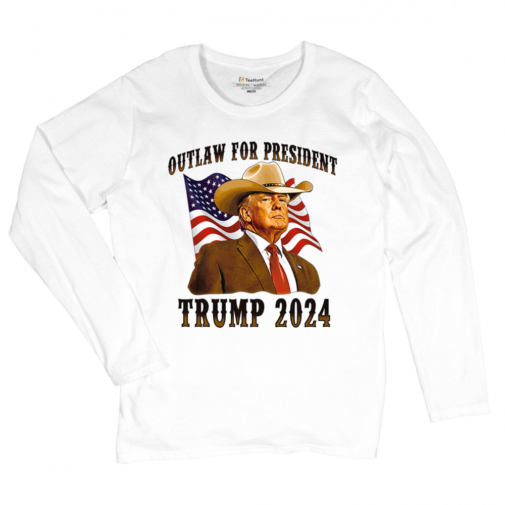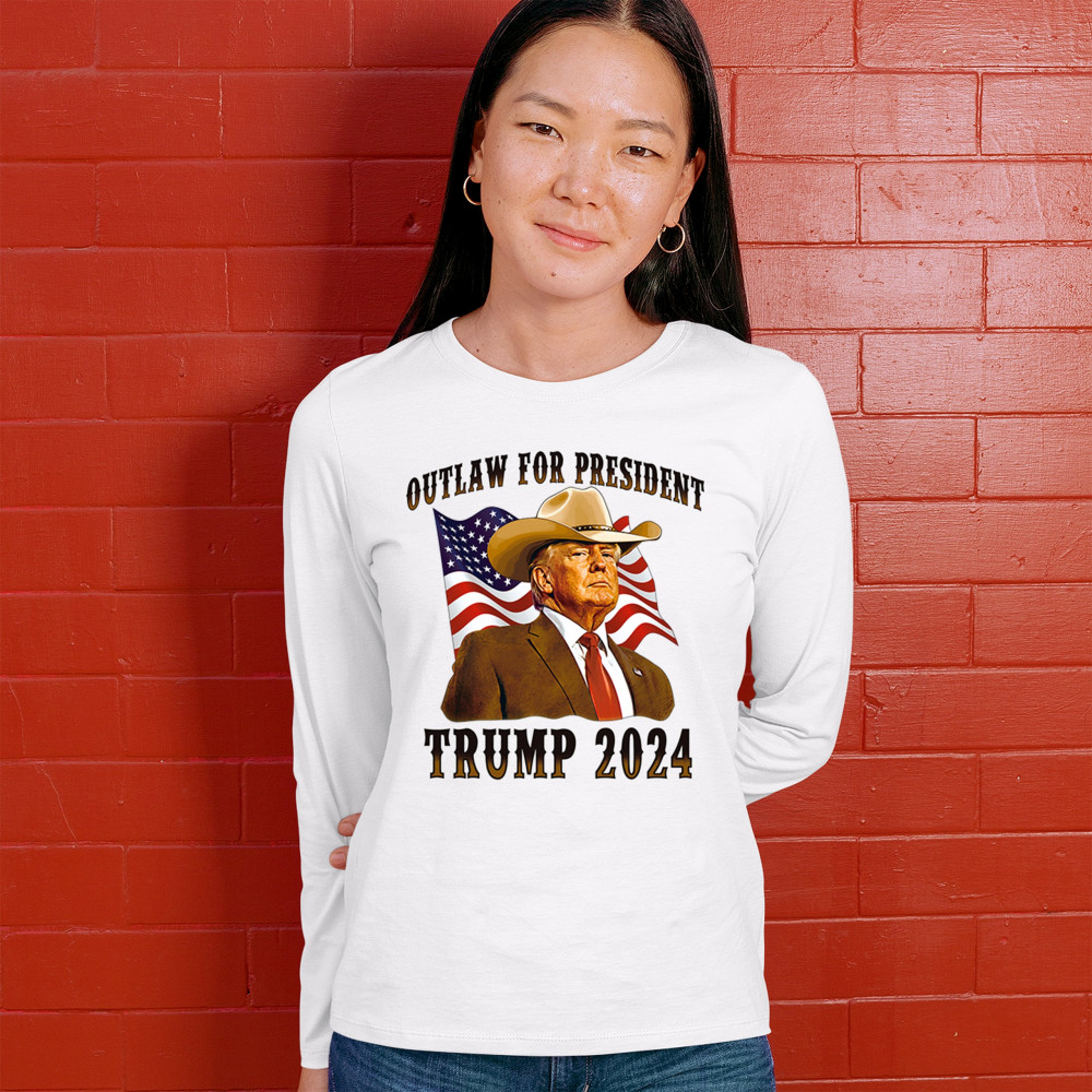 Bold "Outlaw for President" Trump 2024 design for conservative supporters, featuring Donald J. Trump and the American flag. Show your patriotism.