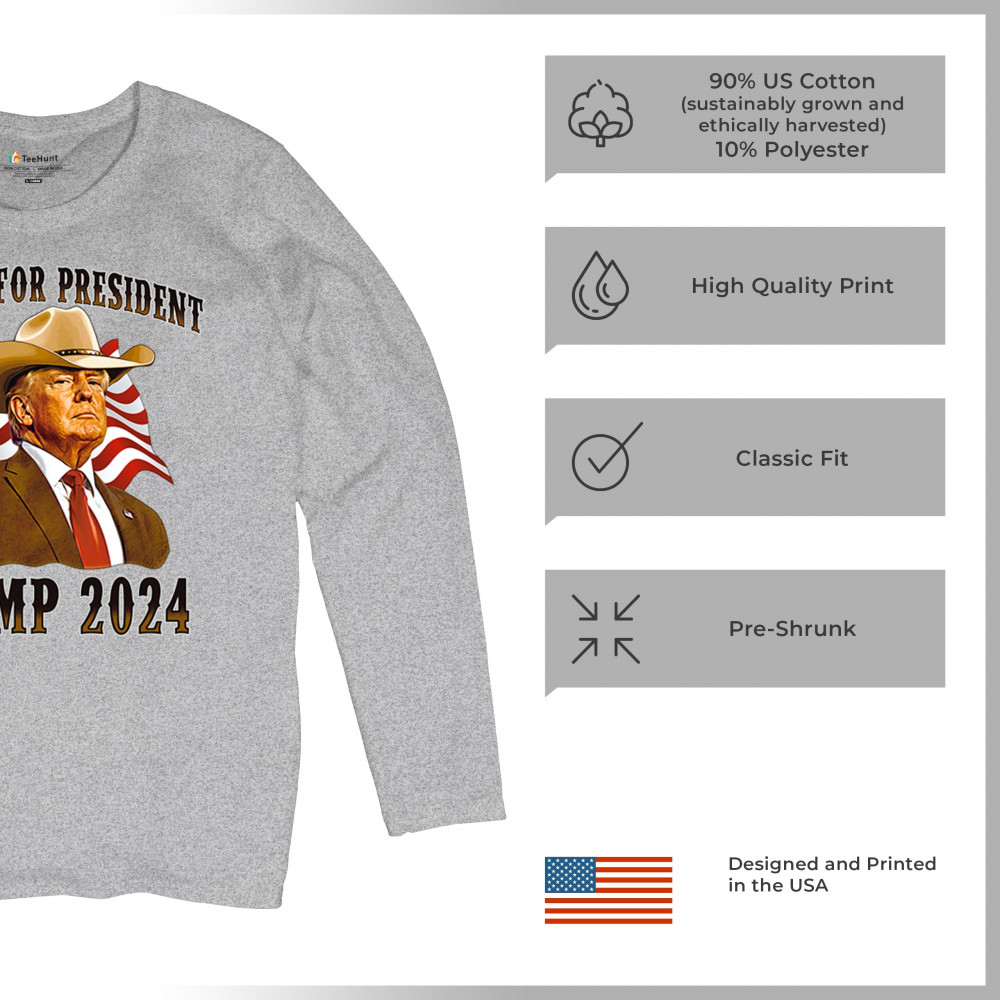 The "Outlaw for President" Trump 2024 design is a powerful symbol of American resilience and conservative pride. Featuring Donald J. Trump in a cowboy hat with the American flag waving behind, this design speaks to supporters who believe in the America First movement, conservative values, and a rebel spirit. Ideal for rallies, patriotic events, and anyone looking to make a bold statement for the 47th President of the United States.
