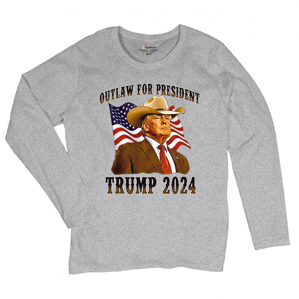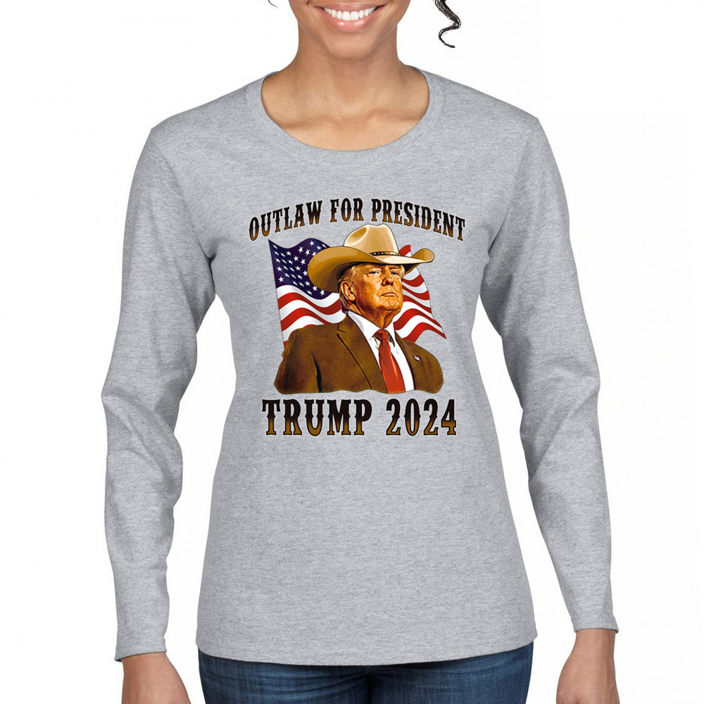 Bold "Outlaw for President" Trump 2024 design for conservative supporters, featuring Donald J. Trump and the American flag. Show your patriotism.