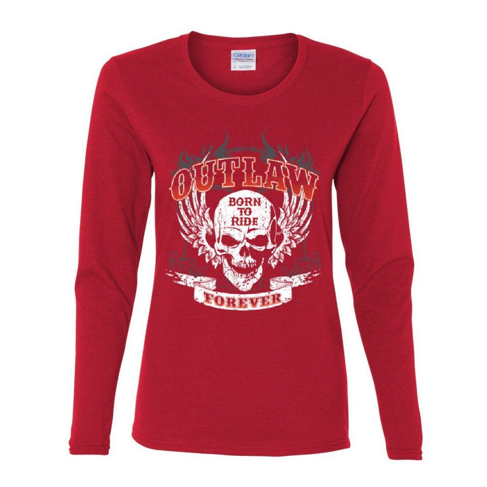 OUTLAW FOREVER women's long sleeve tee born to ride mc chopper bobber red
