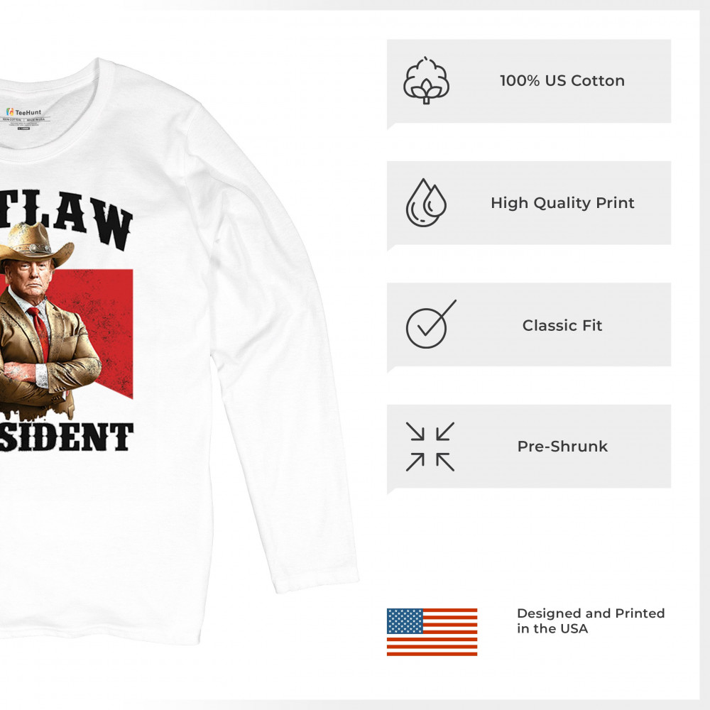 Celebrate America First with the "Outlaw President" design! Support Donald J. Trump, the Red Wave, and conservative values in bold style.