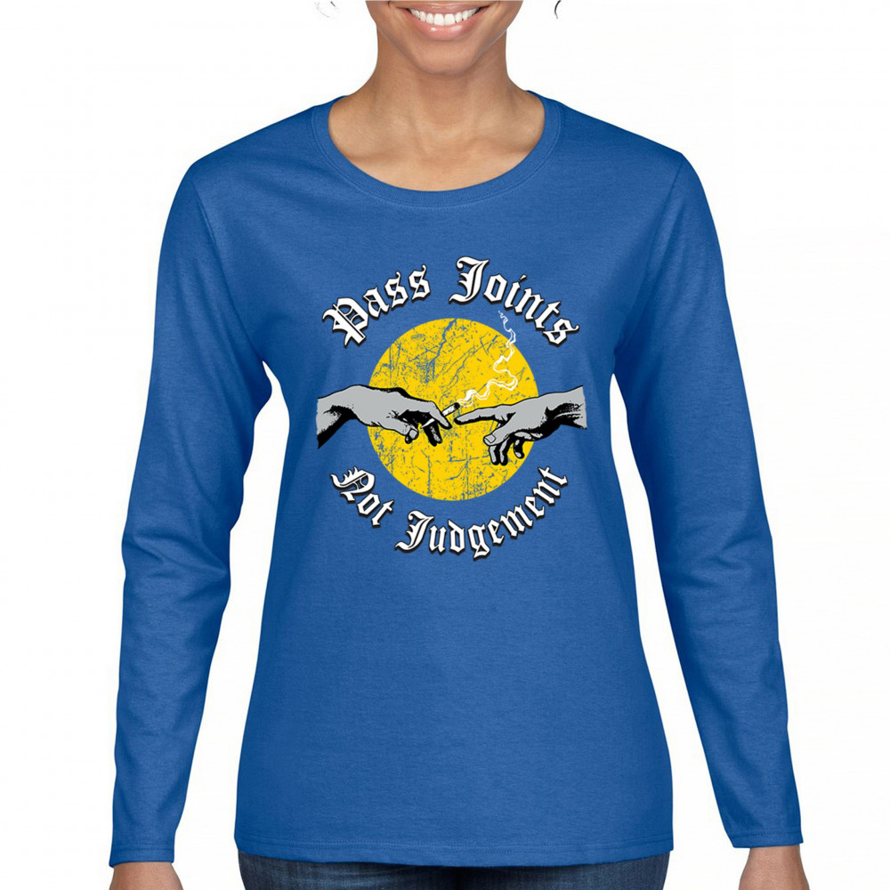 Cannabis culture twist on classic art. Hands passing a joint with “Pass Joints Not Judgement†message. Chill, bold, and unapologetically stoner.