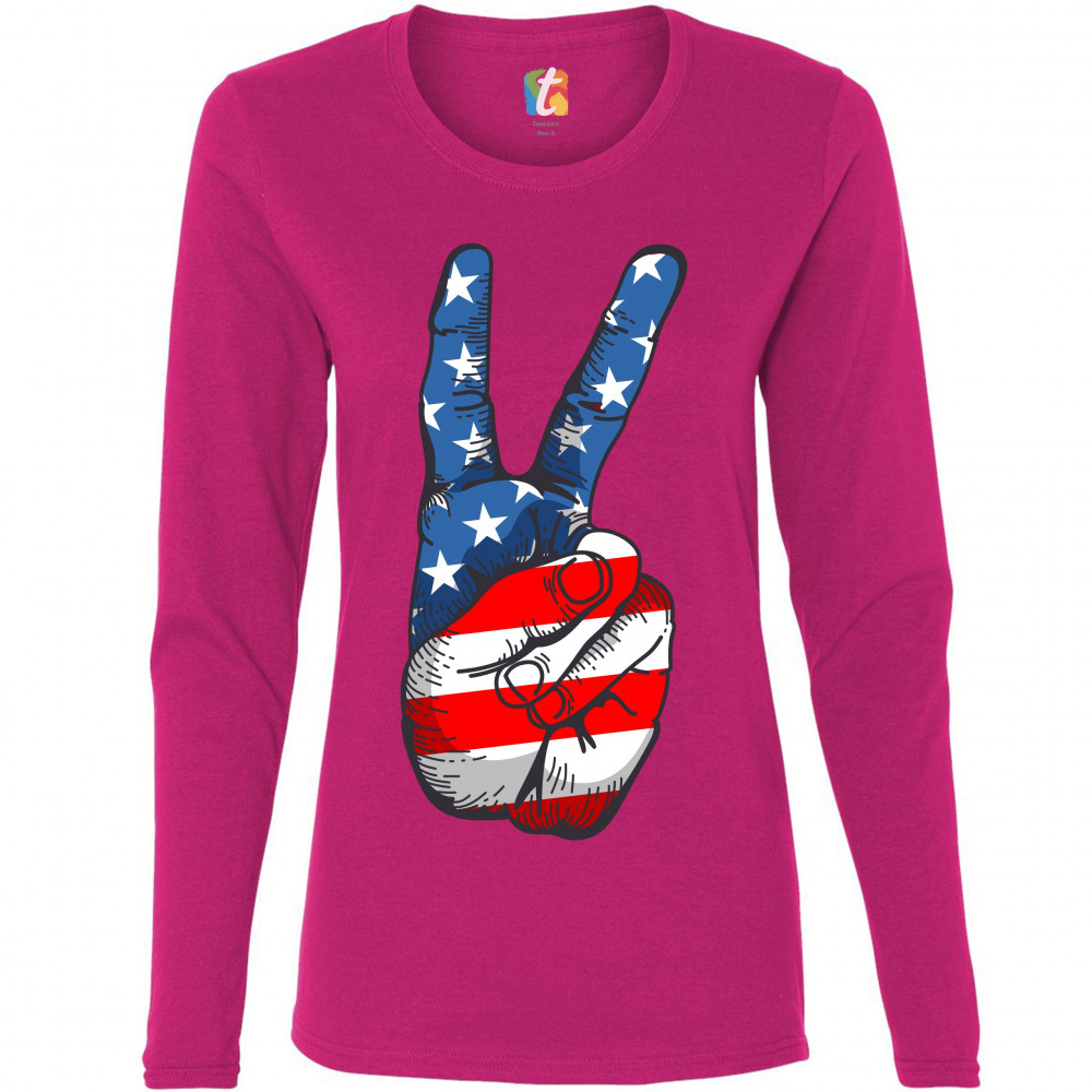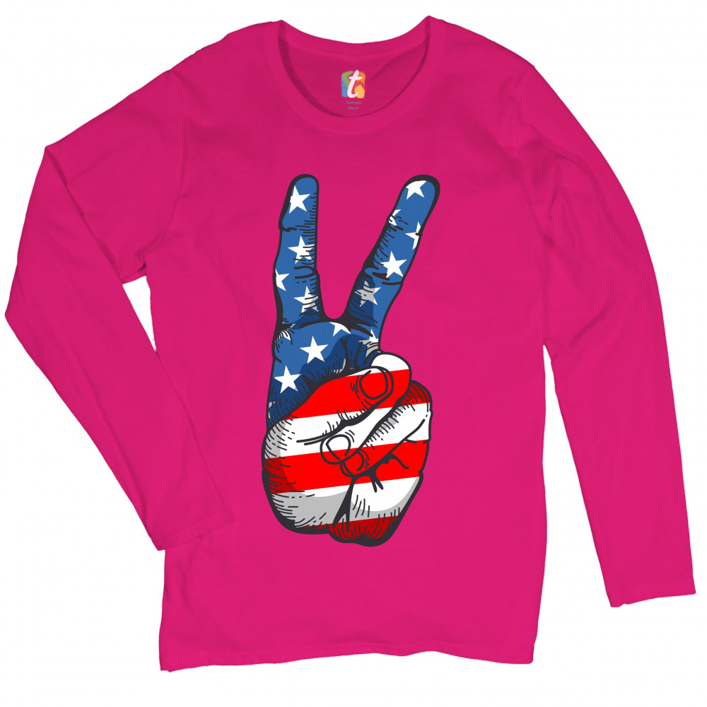 PATRIOTIC VICTORY SIGN women's long sleeve t-shirt american flag 4th of july pink