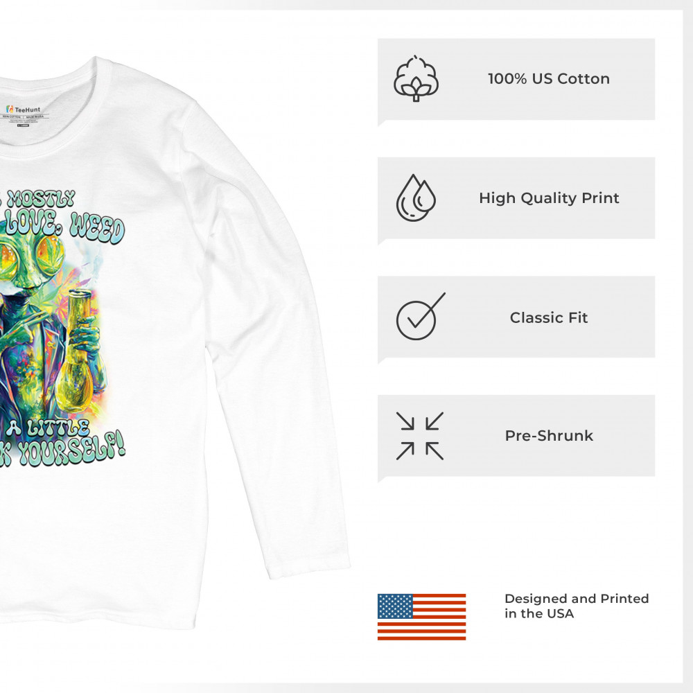This bold alien stoner design fuses colorful weed art with raw honesty and stoner attitude. Featuring a high alien and vibrant peace love weed vibe, it's perfect for unapologetic smokers who blend kindness and truth. Wear it at festivals, smoke sessions, or whenever your mood is 80% peace, 20% sarcasm. It’s humor, cannabis culture, and bold energy rolled into one.