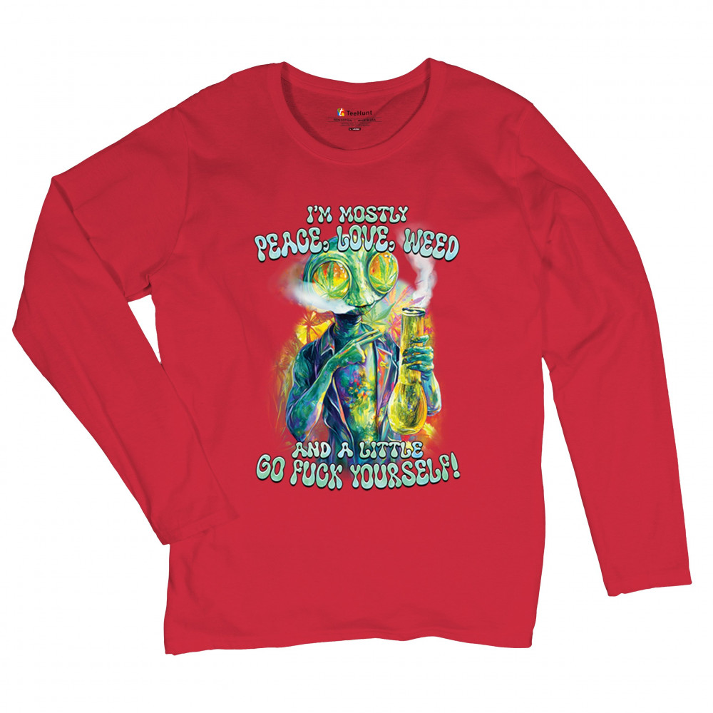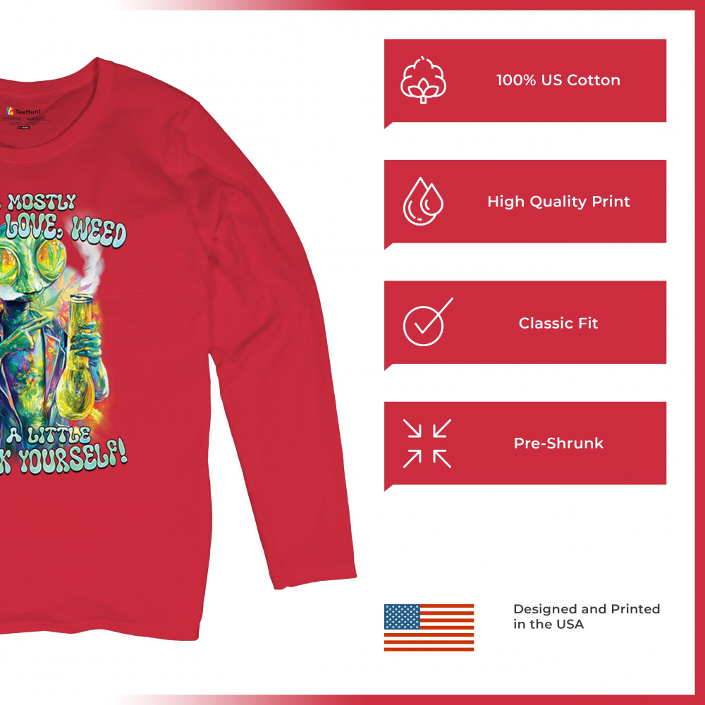 This bold alien stoner design fuses colorful weed art with raw honesty and stoner attitude. Featuring a high alien and vibrant peace love weed vibe, it's perfect for unapologetic smokers who blend kindness and truth. Wear it at festivals, smoke sessions, or whenever your mood is 80% peace, 20% sarcasm. It’s humor, cannabis culture, and bold energy rolled into one.