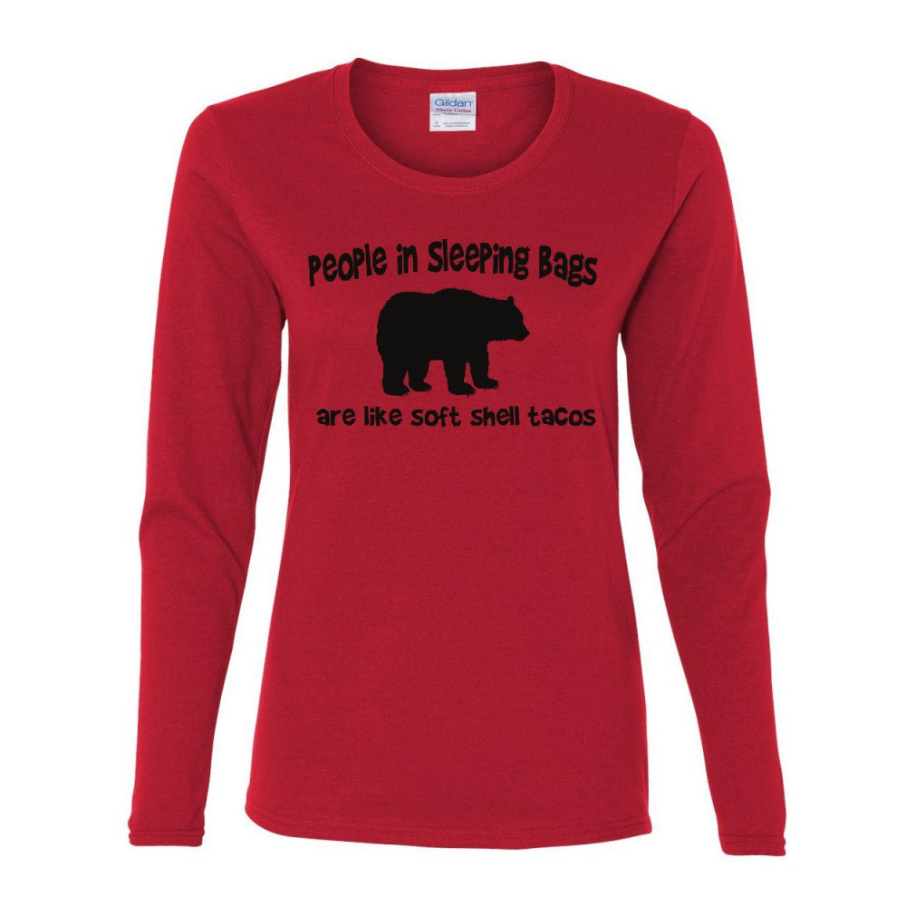 PEOPLE ARE SOFT SHELL TACOS women's long sleeve tee funny camping brown bear red