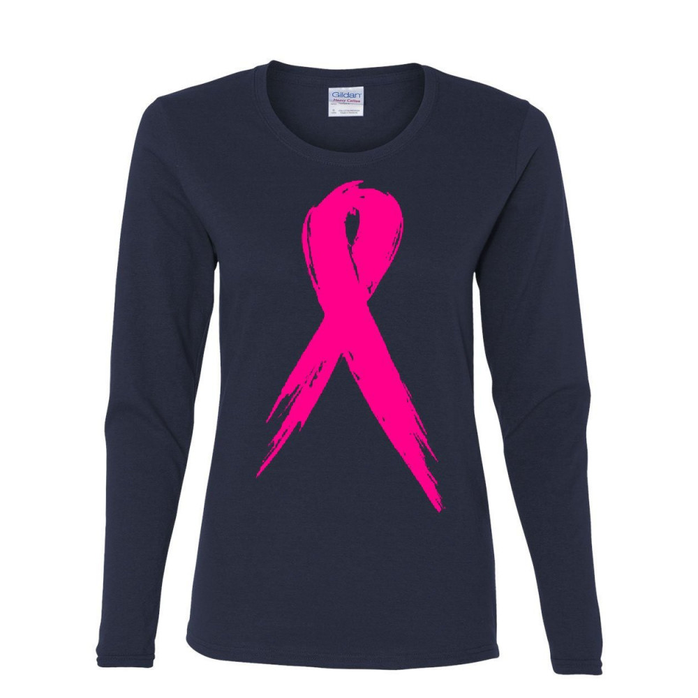 PINK RIBBON BREAST CANCER AWARENESS women's long sleeve tee hope fight survivor navy blue