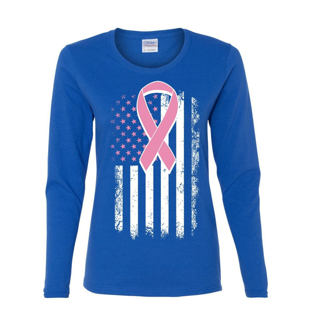 PINK RIBBON FLAG long sleeve t-shirt breast cancer awareness royal blue