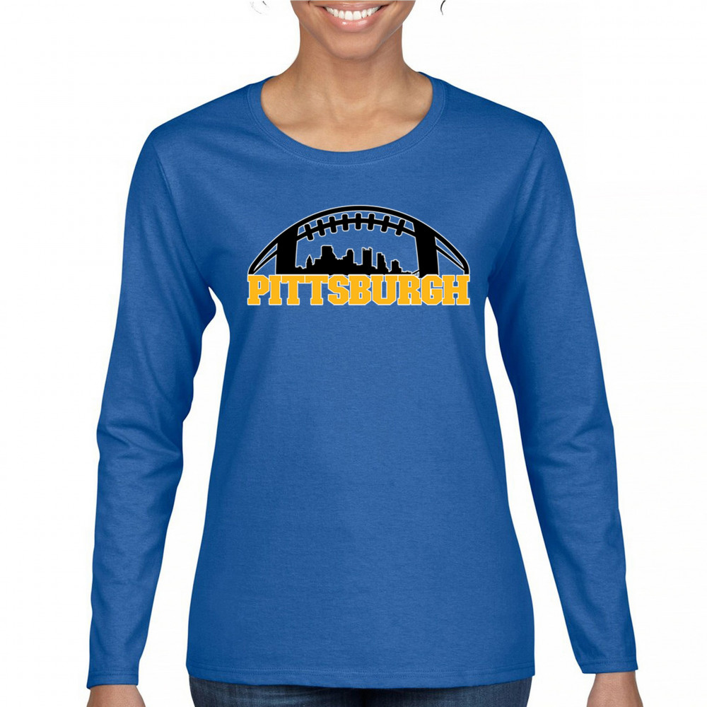 Celebrate Pittsburgh pride with a bold football design featuring the city skyline. Perfect for fans, game days, tailgates, and Steel City enthusiasts.