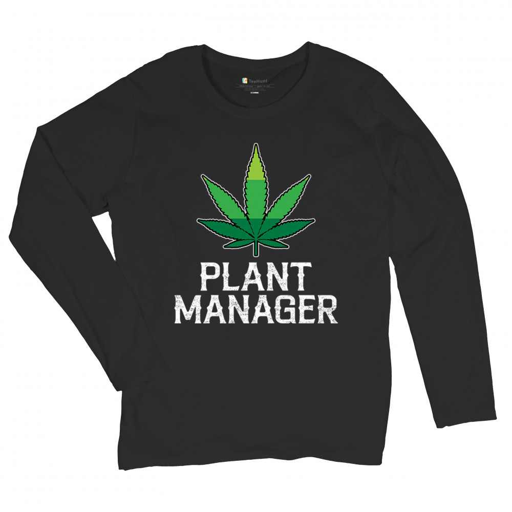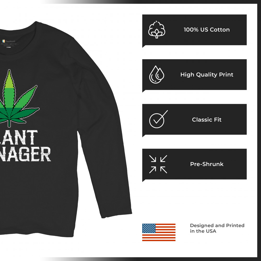 Humorous "Plant Manager" design featuring a bold green cannabis leaf. Perfect for fans of Mary Jane, stoned humor, and relaxed style. Ideal for chill vibes.