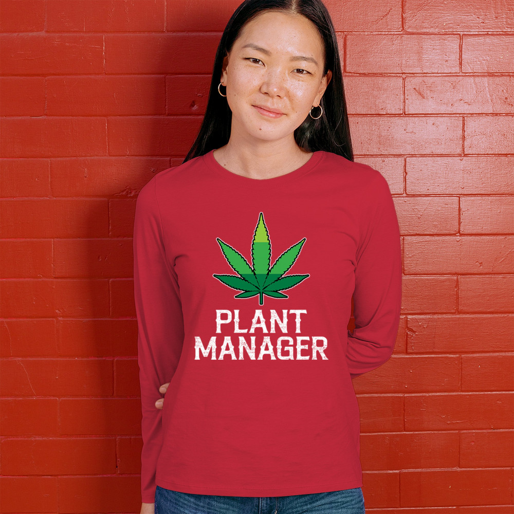 Humorous "Plant Manager" design featuring a bold green cannabis leaf. Perfect for fans of Mary Jane, stoned humor, and relaxed style. Ideal for chill vibes.