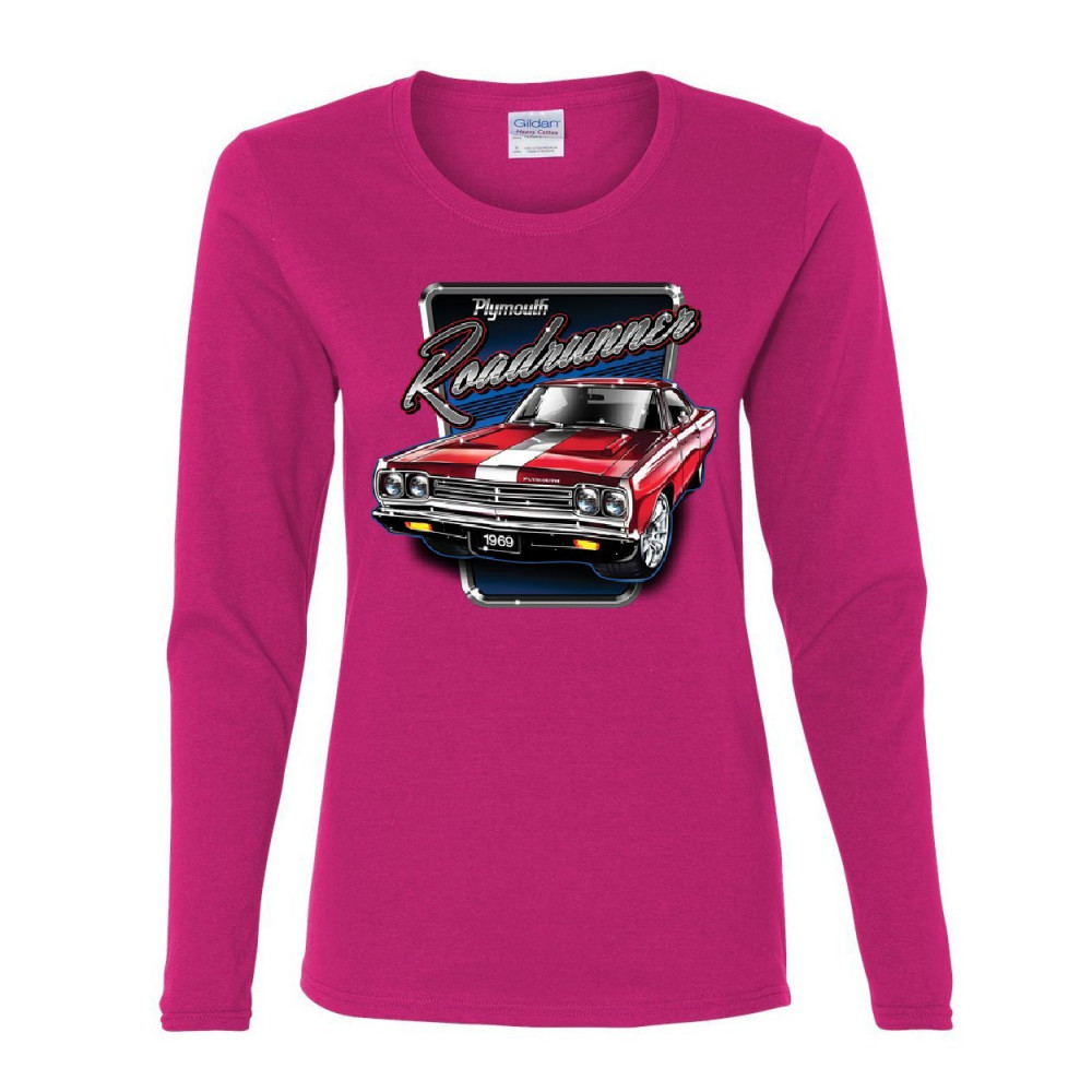 PLYMOUTH ROADRUNNER women's long sleeve tee american muscle car classic route 66 pink