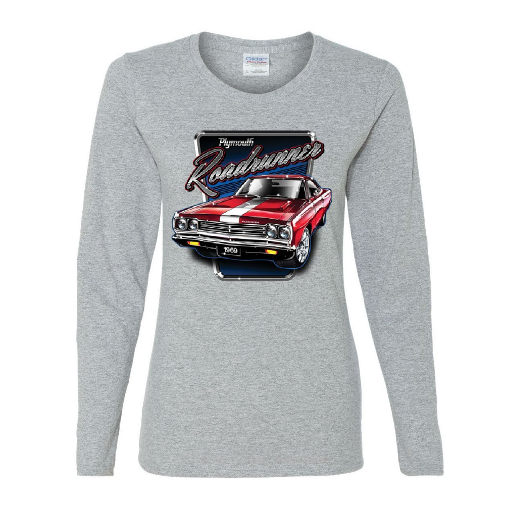 PLYMOUTH ROADRUNNER women's long sleeve tee american muscle car classic route 66 gray