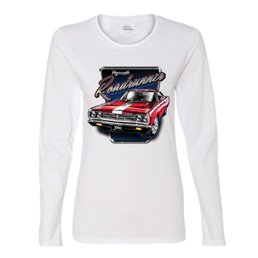 PLYMOUTH ROADRUNNER women's long sleeve tee american muscle car classic route 66 white