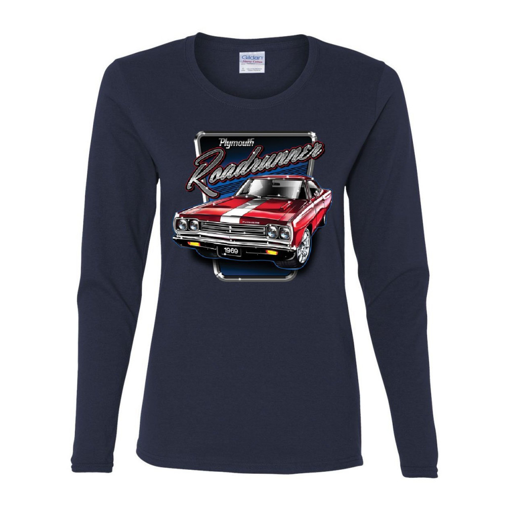 PLYMOUTH ROADRUNNER women's long sleeve tee american muscle car classic route 66 navy blue