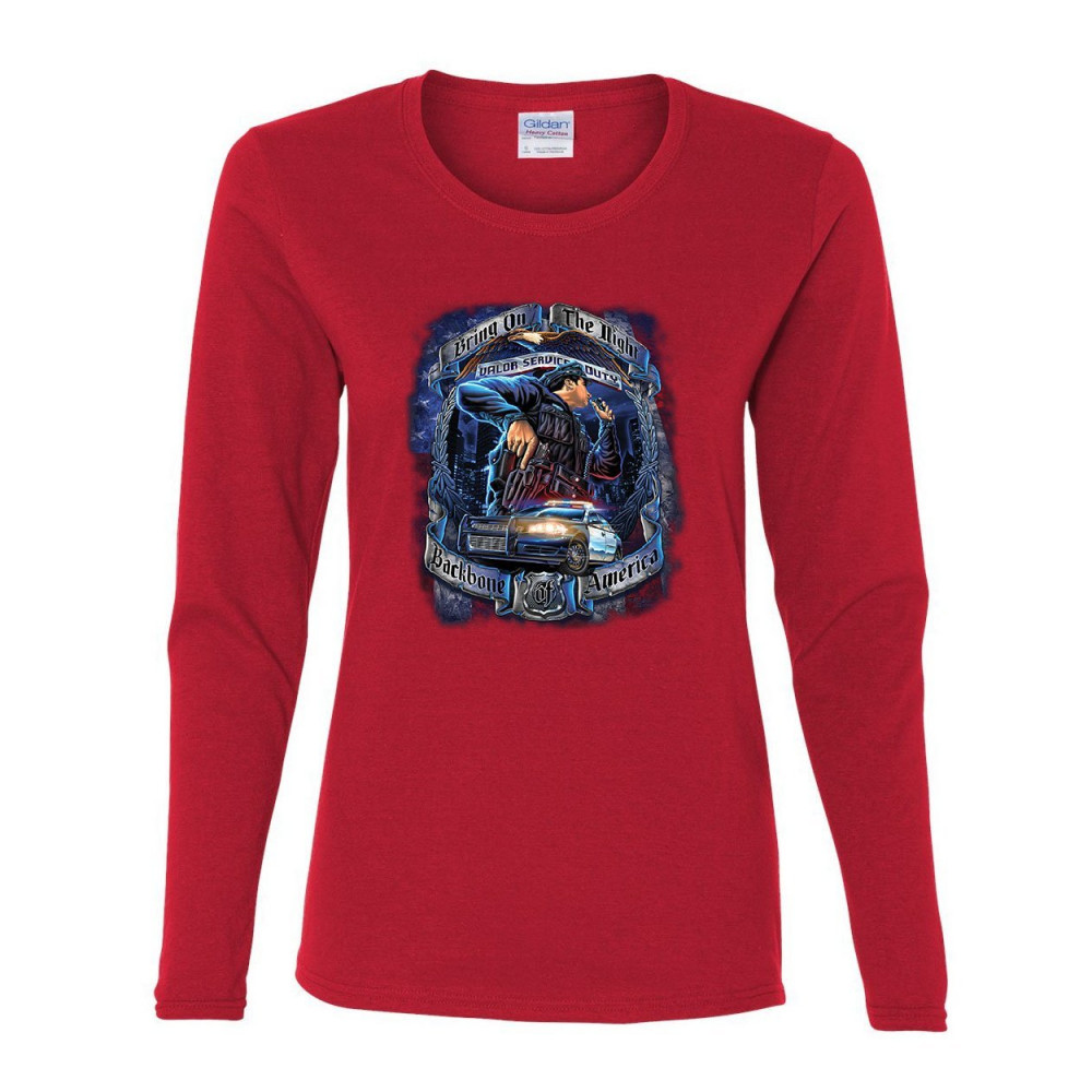 POLICE - BACKBONE OF AMERICA police backbone of america women's long sleeve tee valor service duty cop patrol red